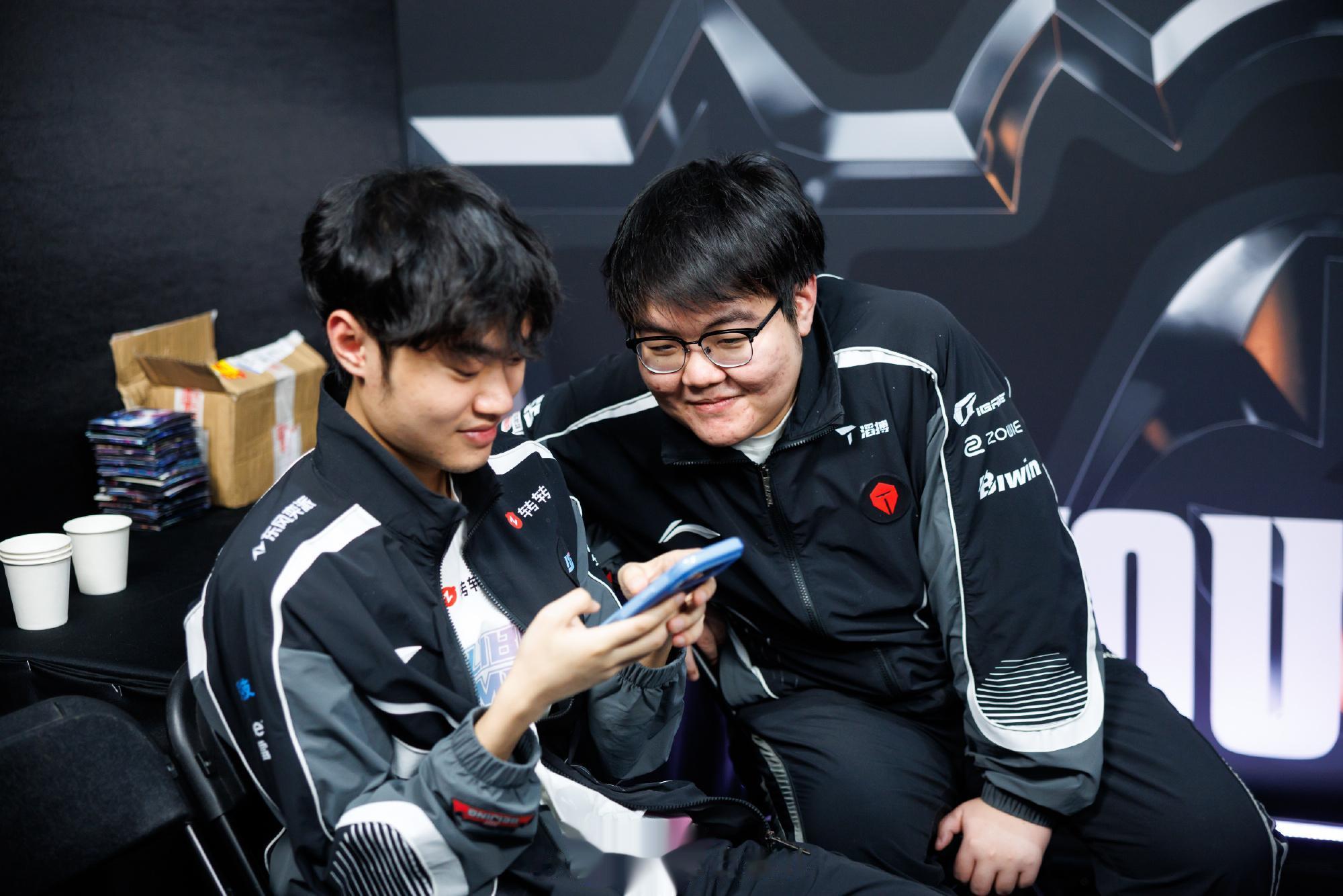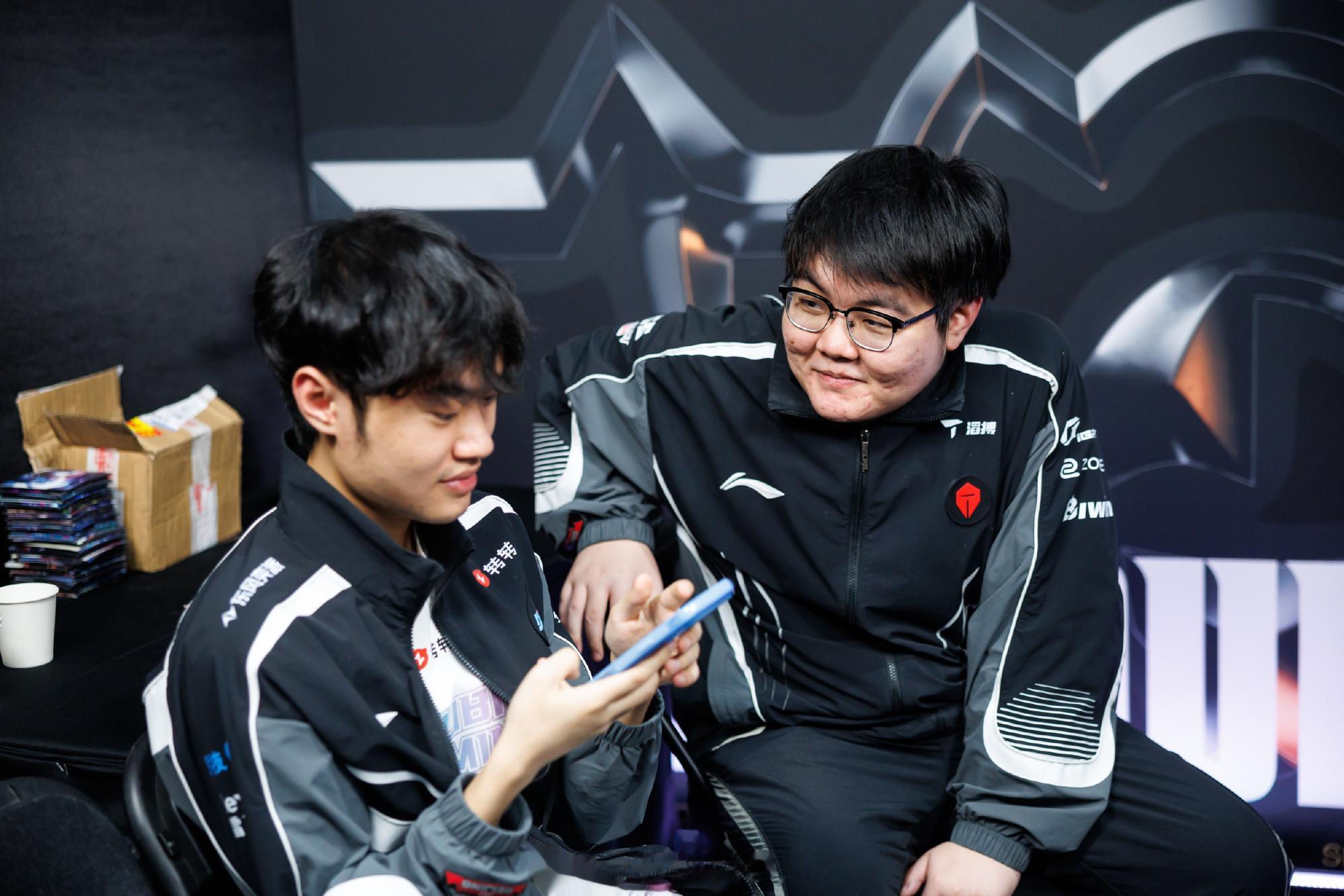 虎扑10月25日讯今日TES战胜BLG晋级八强,赛后摄影师一村分享369与Knight合照,配文如下: