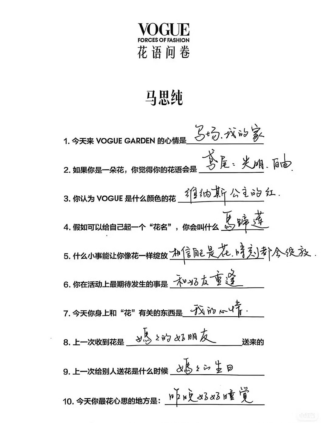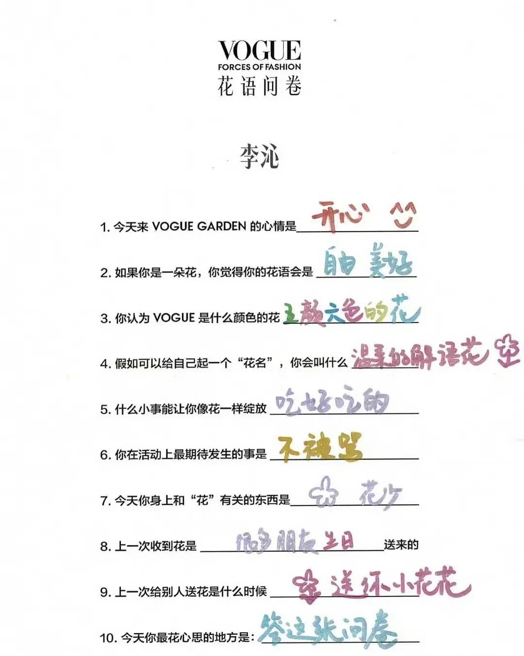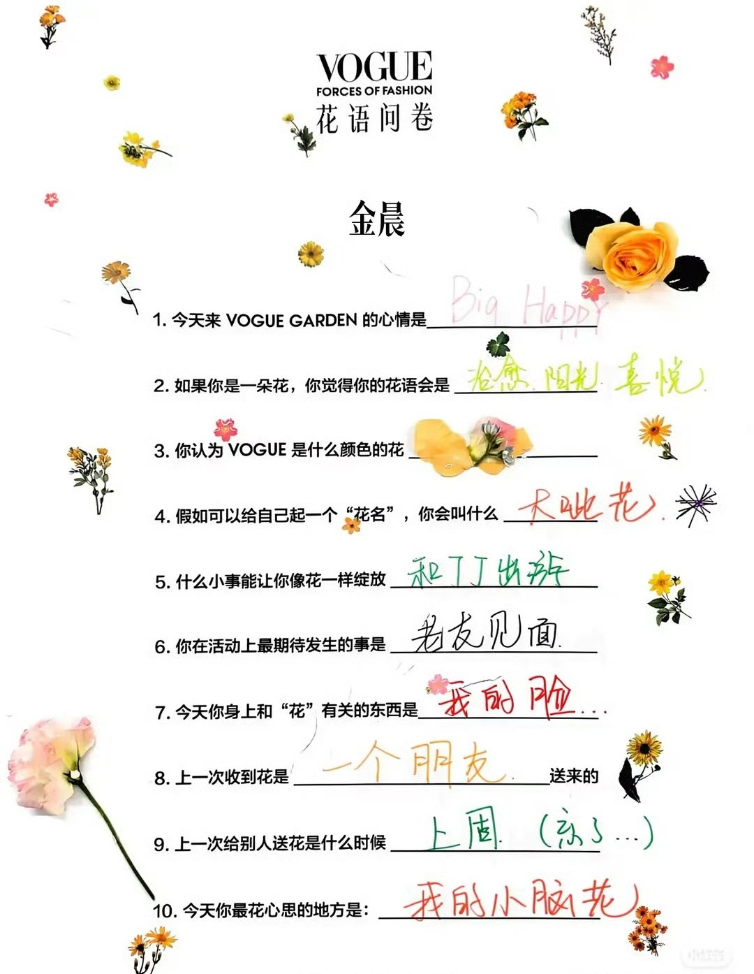 Vogue花语问卷的手写亮点娜扎:全名好长李沁:不被骂金晨:我的脸 我的小脑花龚