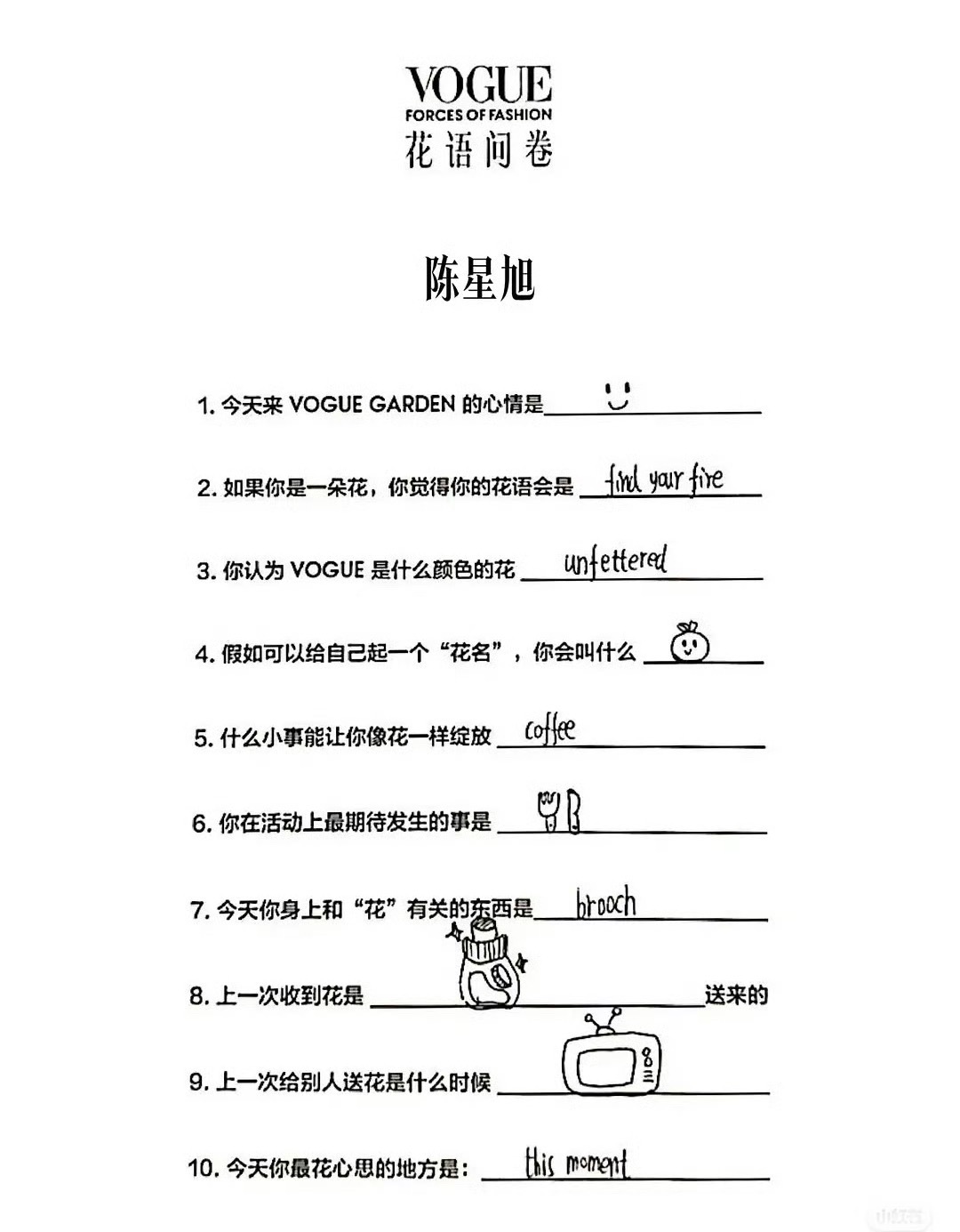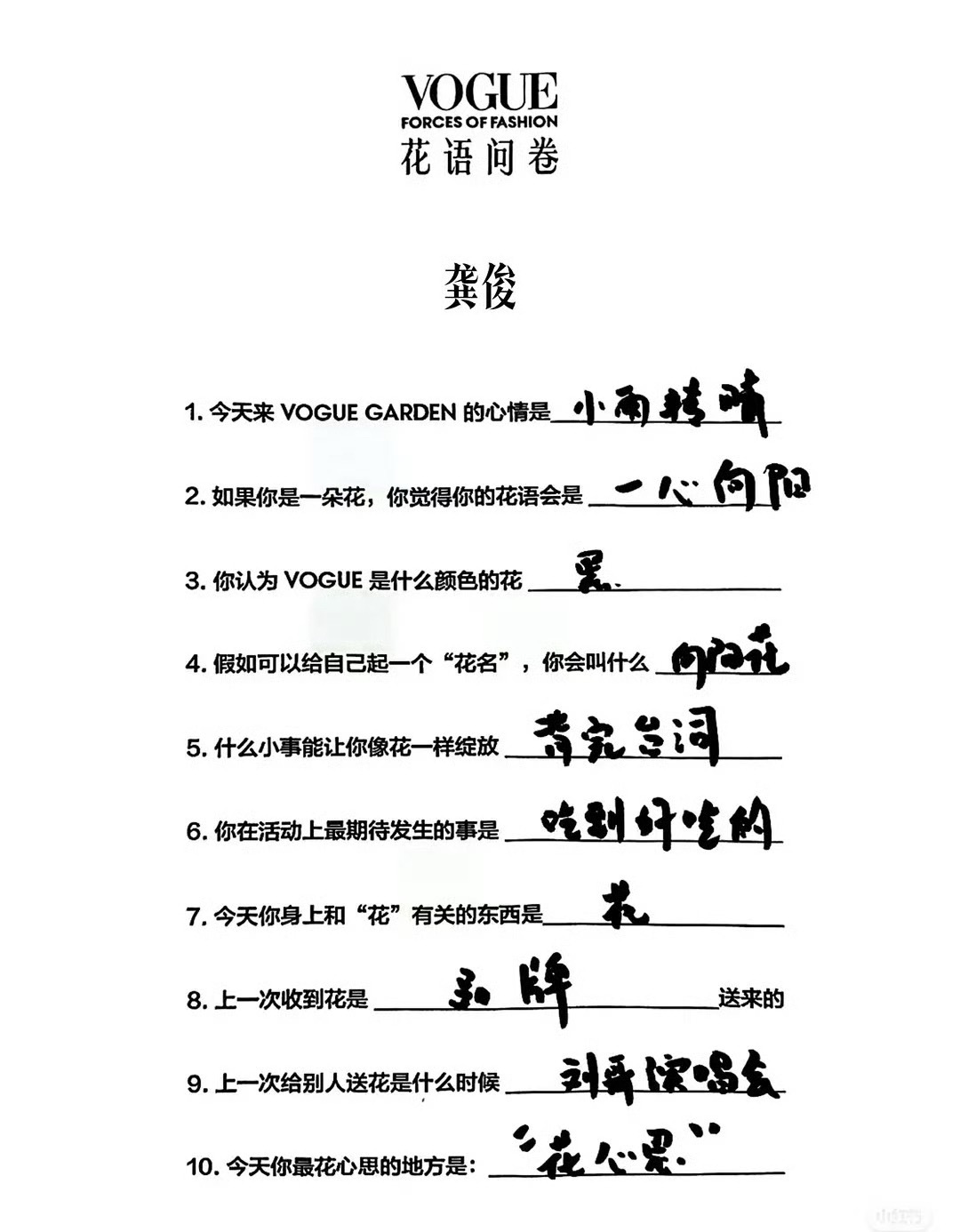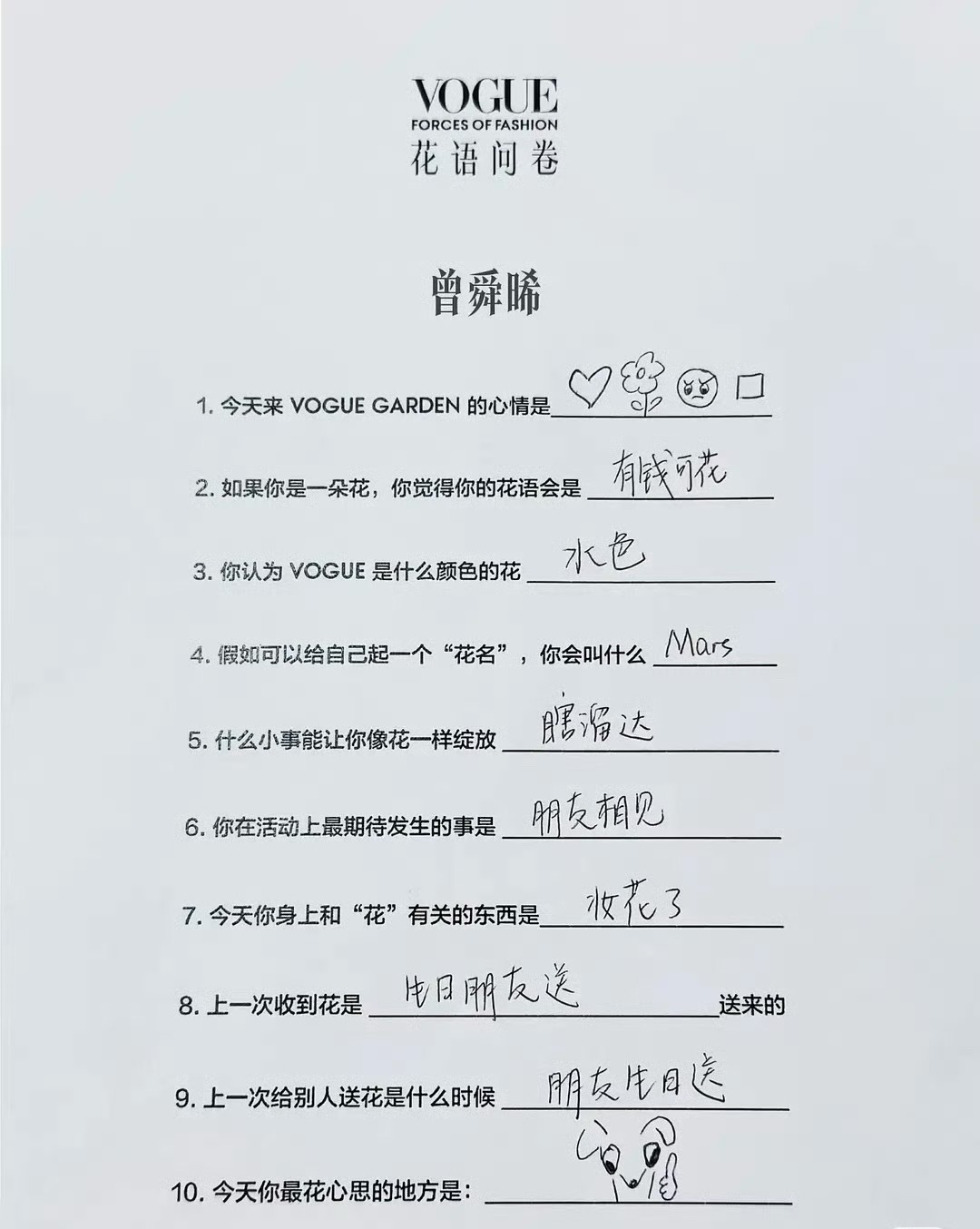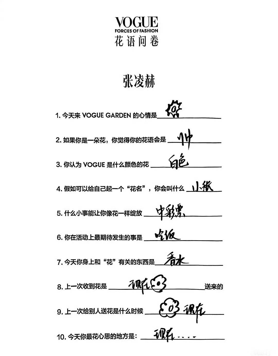 Vogue花语问卷的手写亮点娜扎:全名好长李沁:不被骂金晨:我的脸 我的小脑花龚
