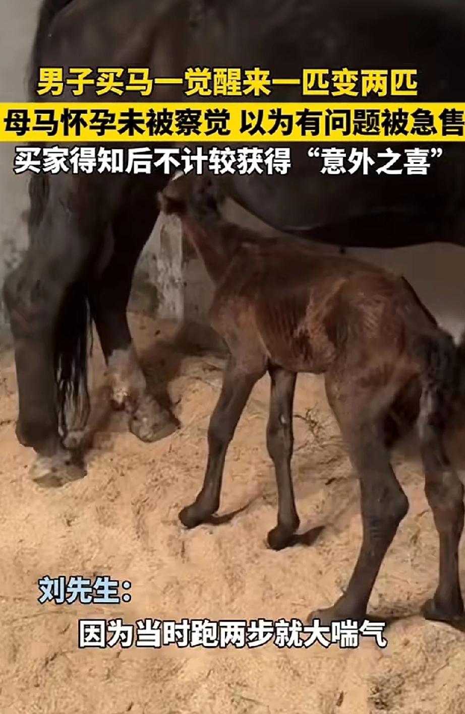 10月25日,山东淄博。刘先生最近买了匹马,因为马的身体状况不大好,让他很是牵挂。这天早上一觉醒来,他就往马厩去看。惊讶的发现,马厩里多出了一匹马。一匹小马驹站在他买的马身边。 刘先生喜欢养马。认识俱乐部一个朋友,告诉他俱乐部里有一匹马身体很瘦,跑几步就大口大口的喘粗气,认为马的肺部有问题,欲将其出售。刘先生不计较马有问题,就将其买了下来,悉心照料。 其实这匹马是匹母马,它怀孕了,俱乐部并未察觉,还叫它做运动,难怪它会喘粗气。 刘先生好心好报,在他的精心照顾下,母马逐渐恢复了健康,顺利的生产出小马驹。给刘先生回报“意外之喜”。 男子买马一觉醒来一匹变两匹意外之喜
