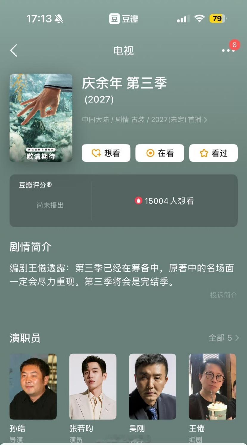 张若昀最近的🫓:电影、搭刘诗诗陈道明的千里江山图、男频爆ip庆余年、第一部成绩就不错丁黑的警察荣誉(赵冬苓编剧)