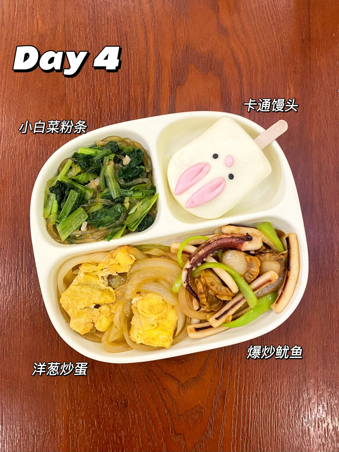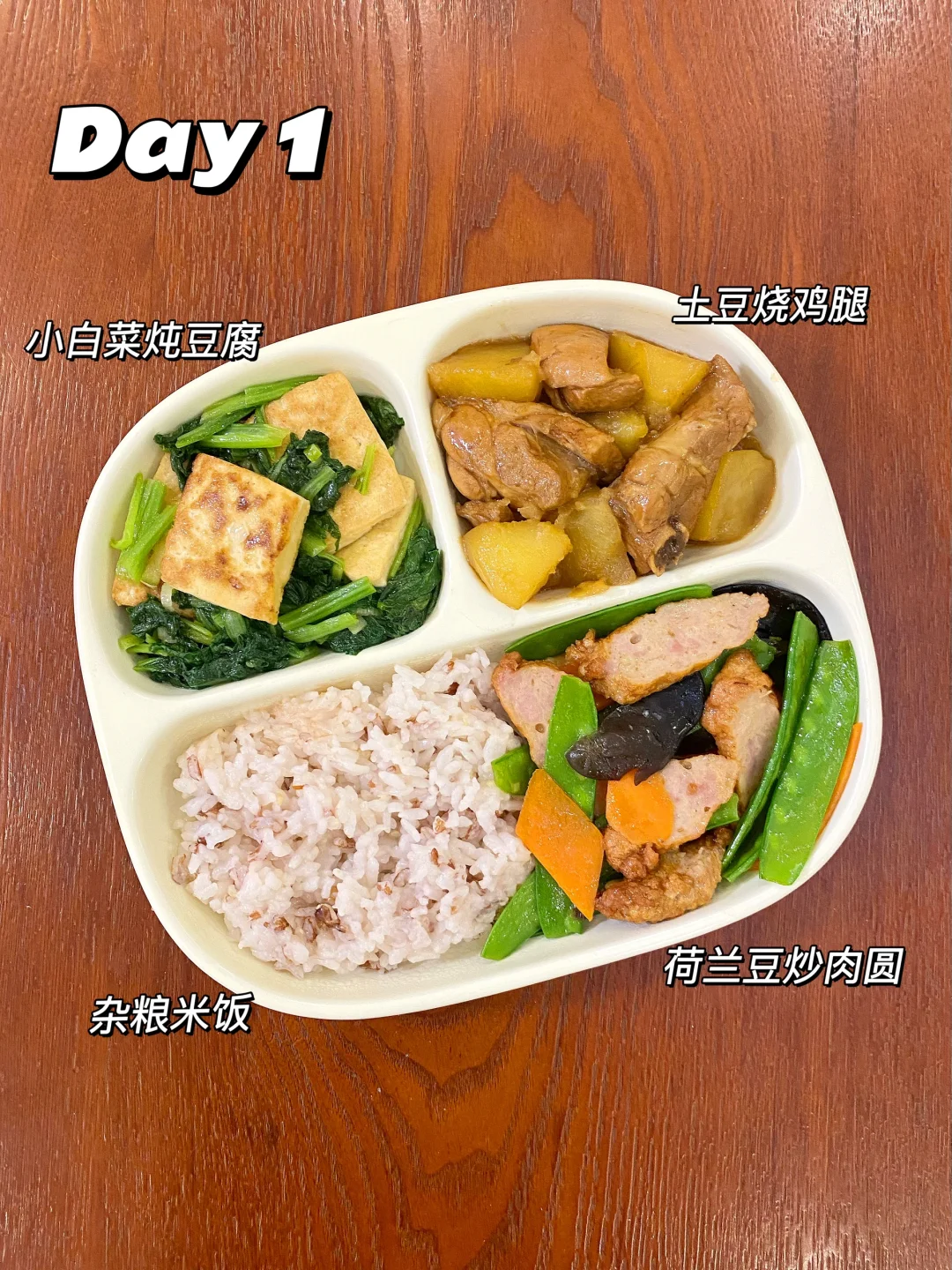 小朋友经历了两周的生病😷,终于满血复活啦,新的一年希望一直健健康康的💪。 DAY11️⃣ 小白菜炖豆腐[搜索高亮]➕土豆炖鸡腿➕荷兰豆炒肉圆➕杂粮米饭 DAY22️⃣ 豆角炖排骨➕冬瓜炖虾➕香菇油菜➕杂粮米饭 DAY33️⃣ 煎鸡腿排➕黄瓜玉米虾仁➕花菜炒肉➕紫米米饭 DAY44️⃣ 小白菜炖粉条➕洋葱炒蛋➕爆炒鱿鱼➕卡通馒头 DAY55️⃣ 蚝油包菜➕煎三文鱼➕杏鲍菇炒肉➕米饭蒸饺 DAY6️⃣ 烤猪肉➕番茄炒蛋➕荷兰豆炒肉丸➕米饭