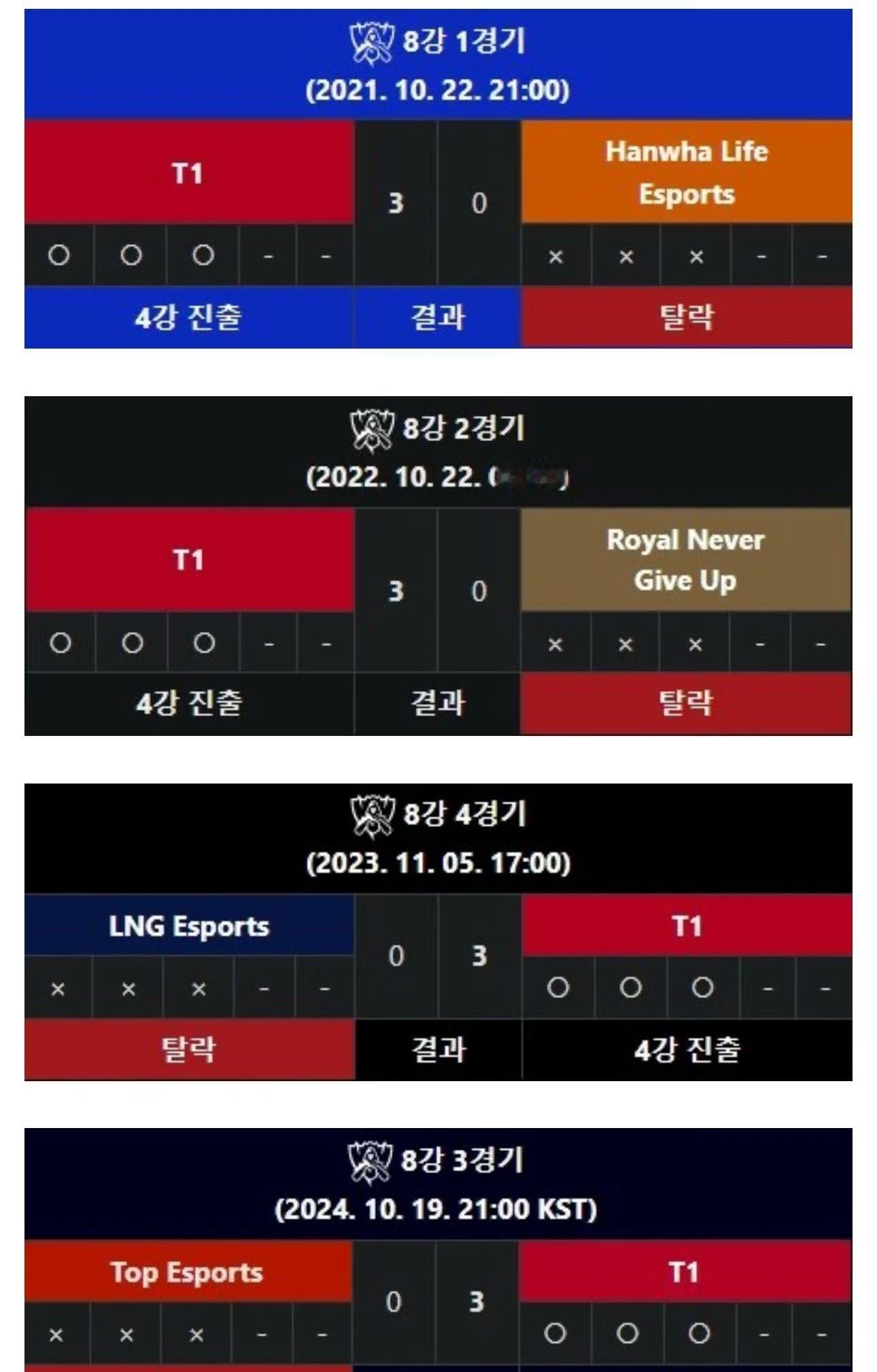 卧槽![允悲][允悲]算下来T1连续四年八强3比0对手,而且其中三个是LPL队伍