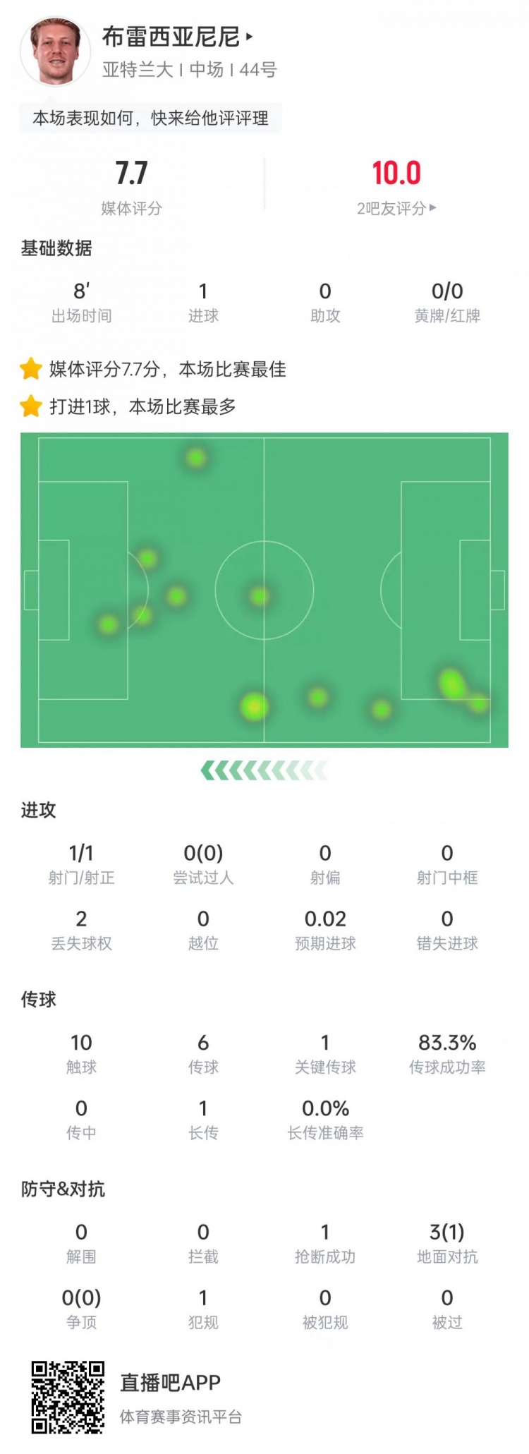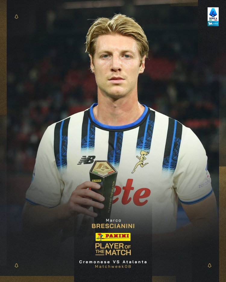 此役布雷西亚尼尼替补出场,为亚特兰大攻入扳平比分的进球,意甲官方宣布,他当选本场比赛最佳球员。