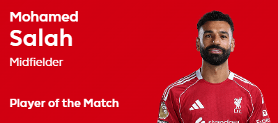 赛后,在英超官网的球迷票选本场最佳的环节,他被球迷们选为本场最佳球员。