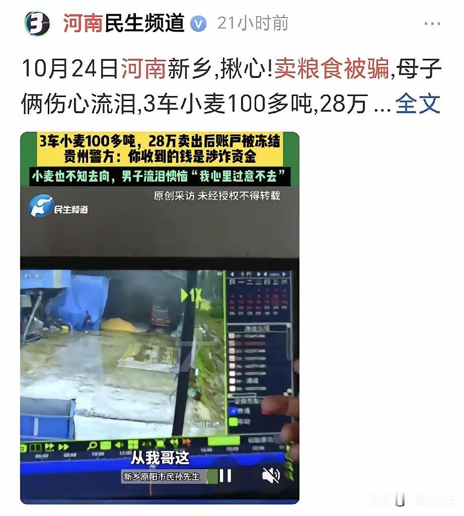 这起事件反映了网络诈骗中普通农户的典型受害过程,以及由此带来的财产和生活困境。以下是事件的分析和注意事项: 一、事件经过总结: 孙先生在网上遇到自称做粮食采购的“老板”,对方表现出专业性,询问粮食容重、水分等数据。 双方达成合约:孙先生家里有百吨小麦,同意以每吨2800元的价格售出100吨。 “老板”安排车辆装粮,孙先生收到转账的280000元,并转给了哥哥和老婆。 数天后,孙先生及家人的银行卡账户被警方冻结,资金被认定为涉诈资金,导致他们无法正常使用账户及生计受阻。 孙先生等作为“善意取得”对象,法律上属于受害者,不应被追缴涉诈资金。 二、诈骗手法分析: 假象专业:诈骗分子假扮“正规采购商”,通过专业问题让受害者信服。 快速达成交易:达成高利润的交易意愿,激发受害者的购买欲望。 安排“拉粮”:派车辆将粮食拉走,同时支付“货款”,让受害者误以为交易成功。 虚假资金转账:转账实际上是涉诈资金,受害者并未察觉。 诈骗目的是转移资金:骗局的目的在于转移或洗钱,不关心粮食的实际交易。 三、法律分析: 善意取得原则:孙先生在不知情的情况下,将涉诈资金转入个人账户,属于善意取得,法律保护其合法权益。 警方冻结行为:依法冻结涉诈资金,属于侦查需要,不侵犯合法权益。 追回和申诉:孙先生应提供交易凭证、聊天记录、粮食检测单等,向相关部门提出“异议申请”。 四、建议与预防: 提高警惕:遇到陌生客户尤其在网络上交易,要多验证对方身份,不轻信高收益承诺。 核实身份信息:不要轻易相信对方提供的资料,尽量面交或通过正规渠道核实。 保存证据:留存聊天记录、转账凭证、货运信息等,以备维权。 遇到异常及时报警:发现资金异常或对方消失,应立即报警,避免财产进一步受损。 合法交易途径:通过正规的平台或合同签订,避免私下交易。 五、总结: 这起事件充分说明,普通农户在互联网交易中也可能成为诈骗受害者。法律规定保护善意取得者权益,但前提是没有明知资金为涉诈。受害者在遇到类似情况,应保持警惕,争取合法维权,避免陷入“被骗逃不过法律”的困境。 如果您或类似情况的受害者遇到类似问题,应及时咨询专业律师或公安机关,采取合法措施维护自身权益。被骗实录 诈骗感悟