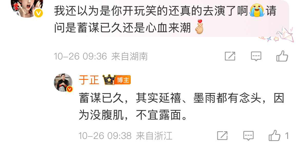 于正要在《金吾不禁》里面饰演将军角色(父辈),并对自己的演技很有自信🫰
