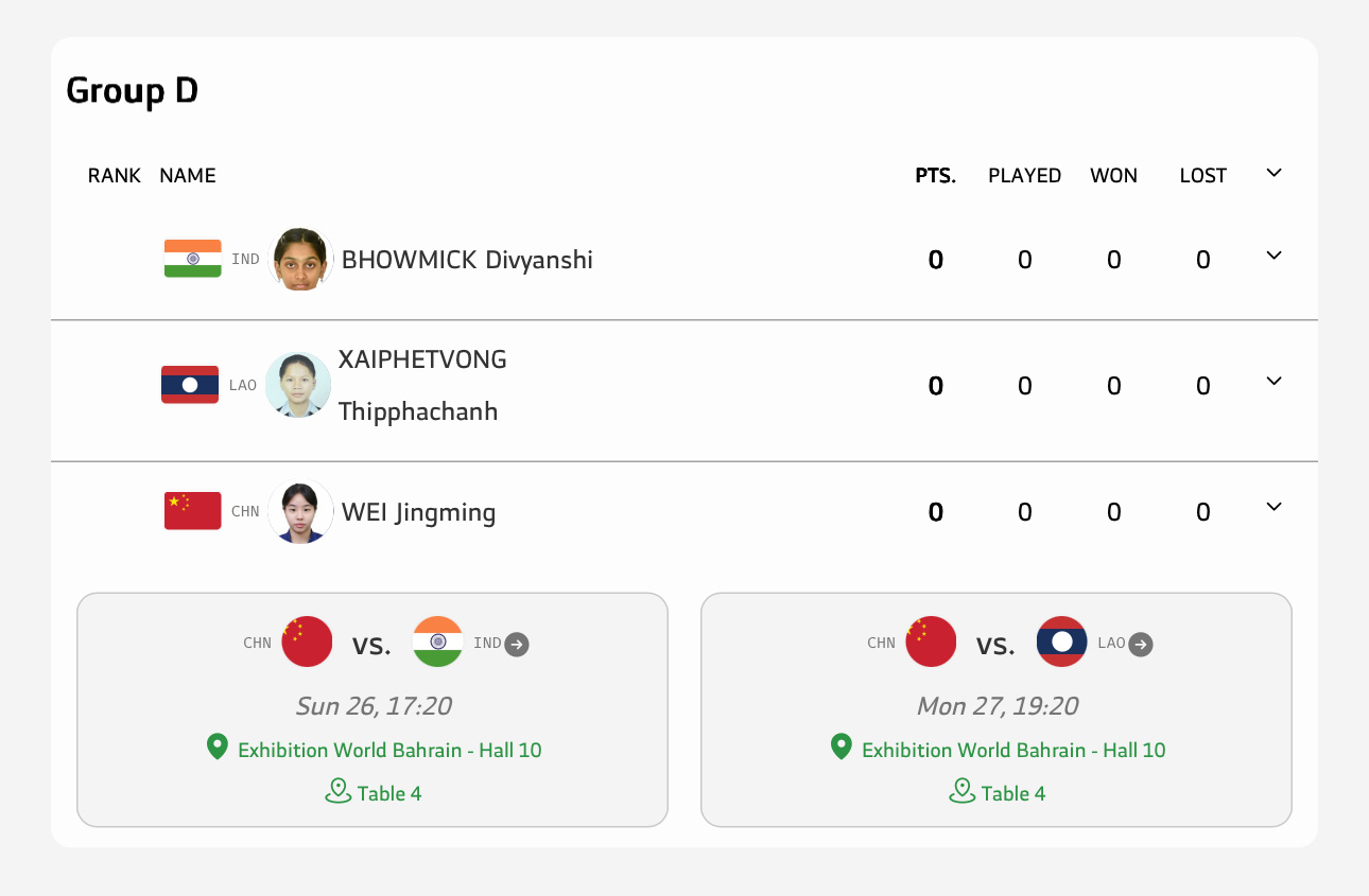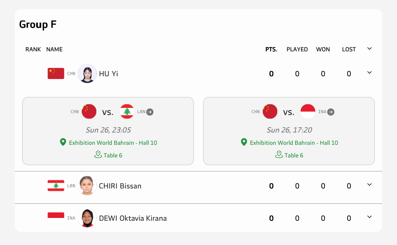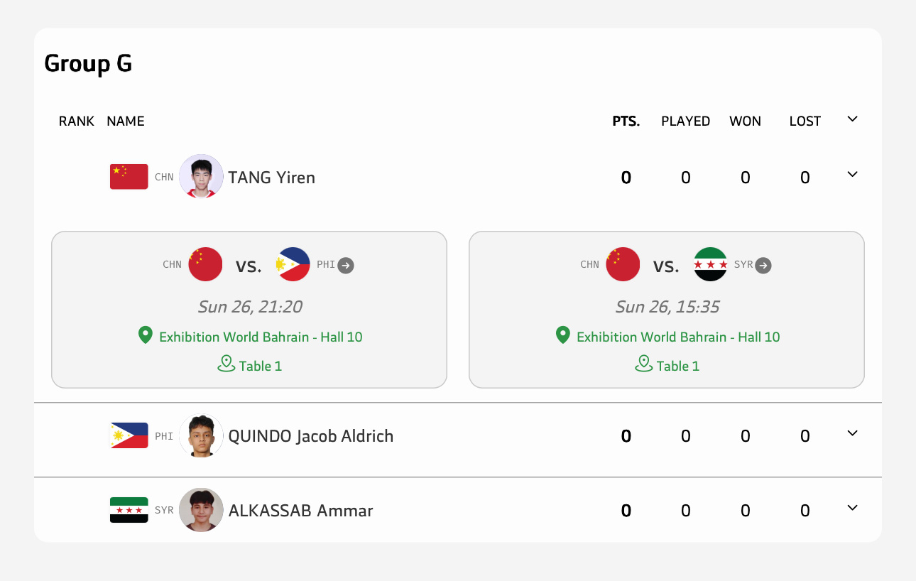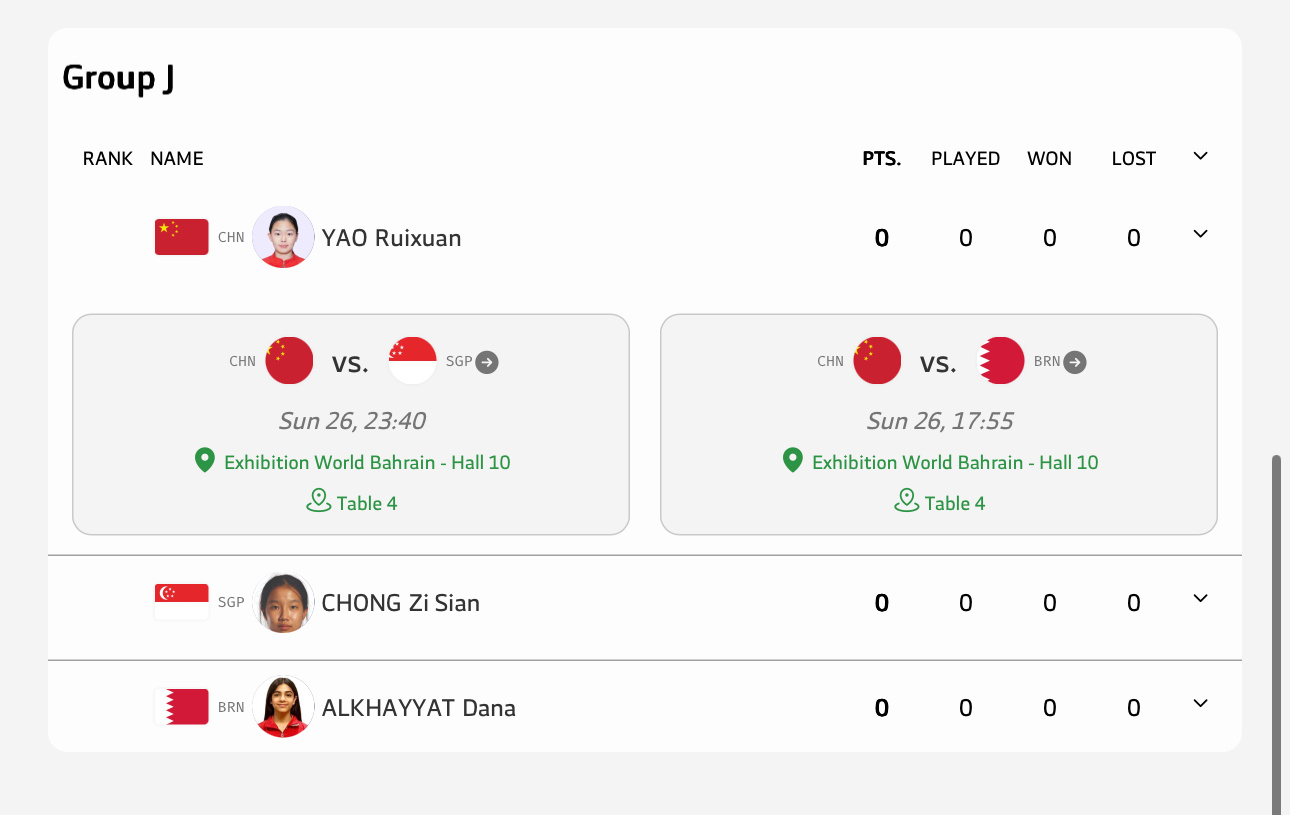 G组 唐乙仁(小组赛时间:26日15:35、26日21:20)