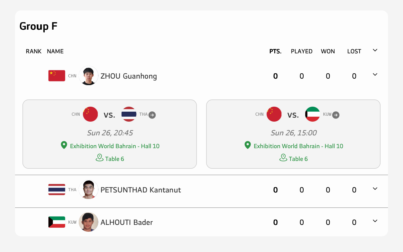 F组 周冠宏(小组赛时间:26日15:00、26日20:45)