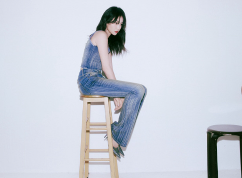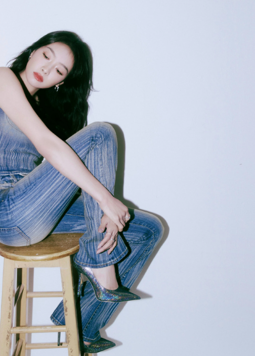 宋茜的吊带牛仔高跟,这挺拔的身材还是很可以的!