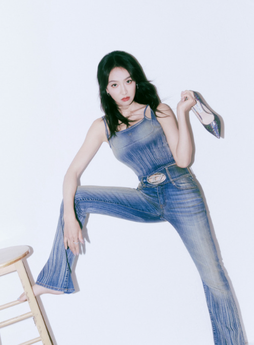 宋茜的吊带牛仔高跟,这挺拔的身材还是很可以的