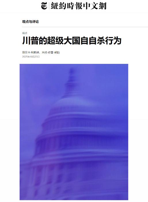 纽约时报说特朗普正在带着美国自杀!美国自二战以来80年的基业已经被特朗普在几个月