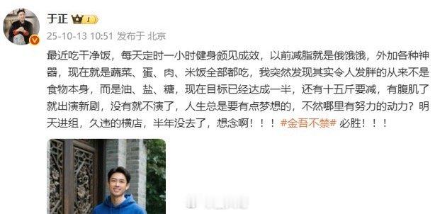 啊这,于正演自己的新剧《金吾不禁》,居然是蓄谋已久啊。之前于正预告要练出腹肌,看样子亖丫头这是有效果了啊,于正分享的定妆照来看,已经等不及看于正和赵晴、周柯宇、夏之光等俊男美女的对手戏了~