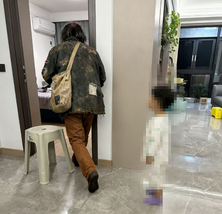▲李女士发送给丈夫的“流浪汉”闯入家中的照片(系AI生成)。