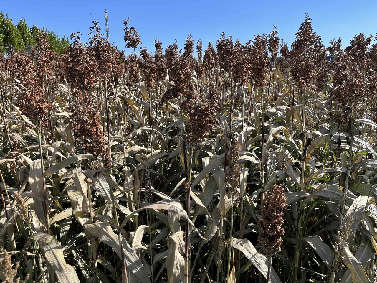 天通苑北地铁站对面的高粱地! 今天没事溜达,走到天通苑北地铁站的天桥上时,发现一大片高粱地!一株株颗粒饱满,俨然已到了收获的时候。 不知道是农科院的育种还是东三旗村民自己所种。 天北一带寸土寸金,能有一大片庄稼地也是新奇。