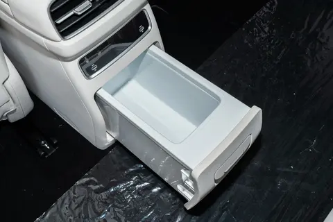 外观和内饰的细节设计也很贴合家庭需求。新增了仙踪绿和苍穹灰两种车漆,仙踪绿灵感来自大兴安岭森林,苍穹灰源自青藏高原天空,颜色沉稳大气,而且漆面经过特殊处理,耐候性好,能抵御刮擦和紫外线,车子能长久保持好颜值。内饰采用全新的暖山玉白色,搭配云感亲肌材质,氛围温馨又有质感。细节上,50W 无线充电面板用了仿麂皮材质,防止手机滑落;内门把手是按键式设计,轻触就能打开;主副驾标配 LED 柔光美妆镜,光线柔和不刺眼,这些小设计都很实用。