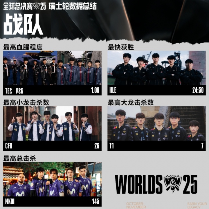 S15瑞士轮最数据:TES、PSG取得最高血腥程度 T1拿下最高大龙击杀数