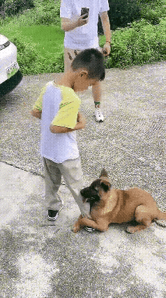 这小狗是有灵性的! 谁能拒绝这样黏人的小毛球啊!视频里狗狗抱着小男孩的腿不撒