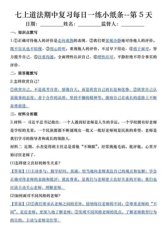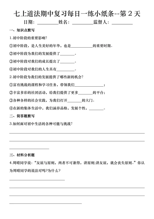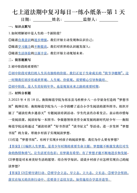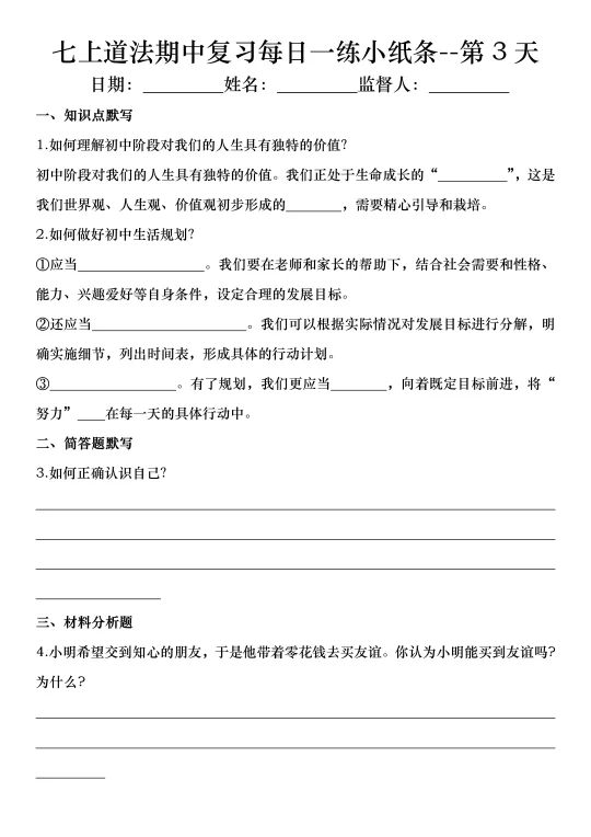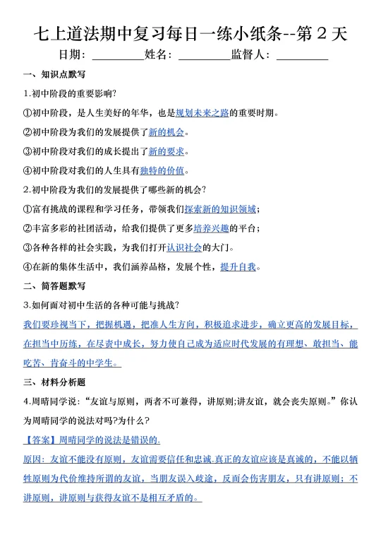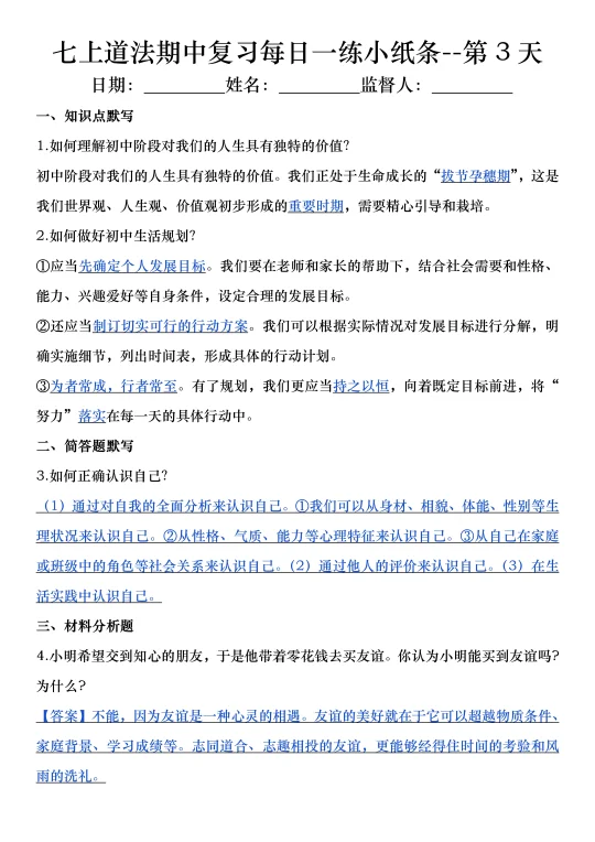 家长收藏孩子受益 必考考点 学渣逆袭指南 初中道德与法治 期中考试 初一 七年级上册道德与法治 知识点总结 学霸秘籍 孩子教育期中复习期中考试提高孩子学习成绩