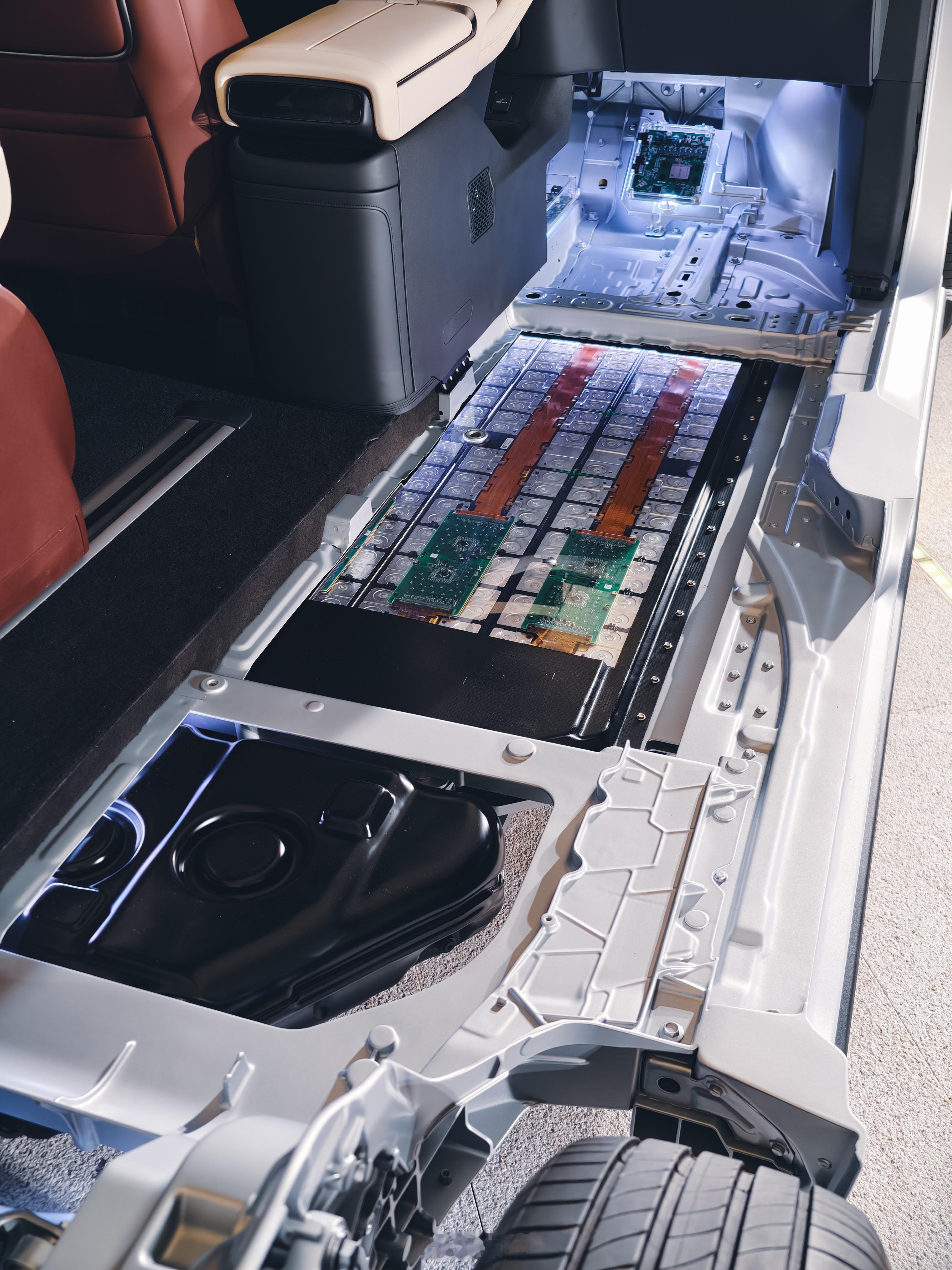 将 60L油箱、60 度电池、增程器及其配套的散热和排气系统完美适配进现有架构