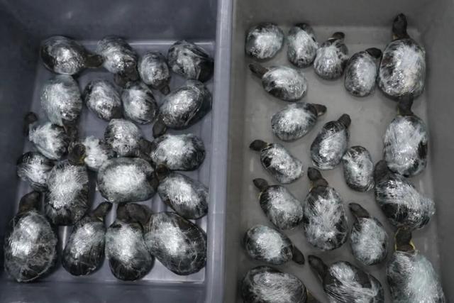 约5分钟后,又在另一名进境女性旅客身上查获用相同手法藏匿的乌龟,共计29只。后经专业机构鉴定,上述68只乌龟均为侧颈龟科非洲侧颈龟属侏儒侧颈龟,在我国无自然分布,属于外来物种。目前,该案已移交海关缉私部门作进一步处理。
