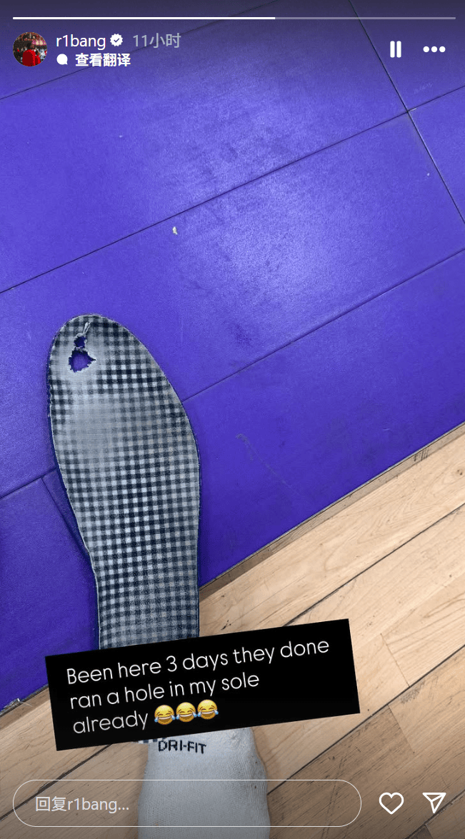 虎扑10月26日讯前深圳外援雷吉-佩里更新社媒晒照发文:到这三天,已经把鞋垫磨破洞了。
