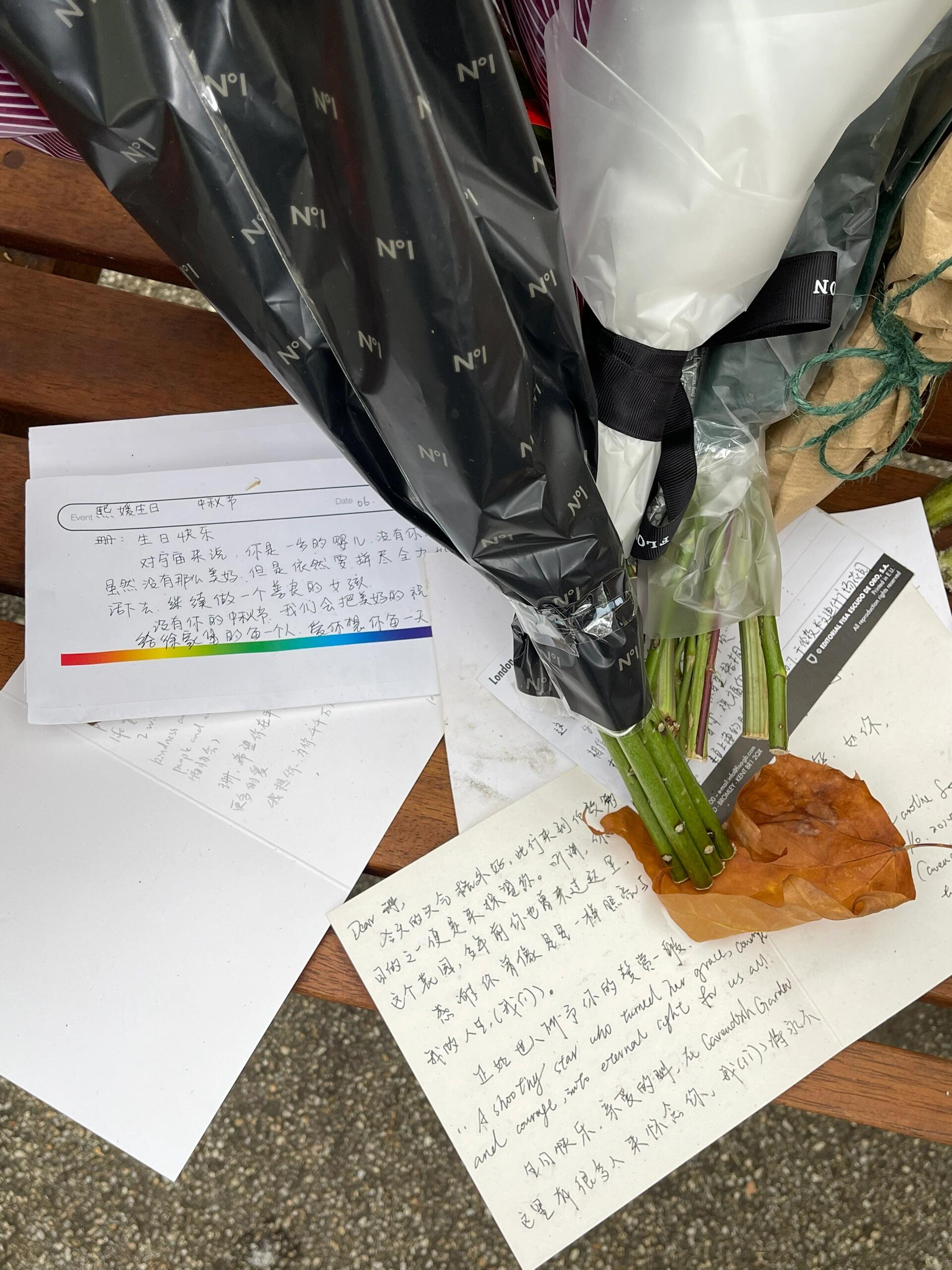 当时椅子旁边坐着一对英国老奶奶和老爷爷