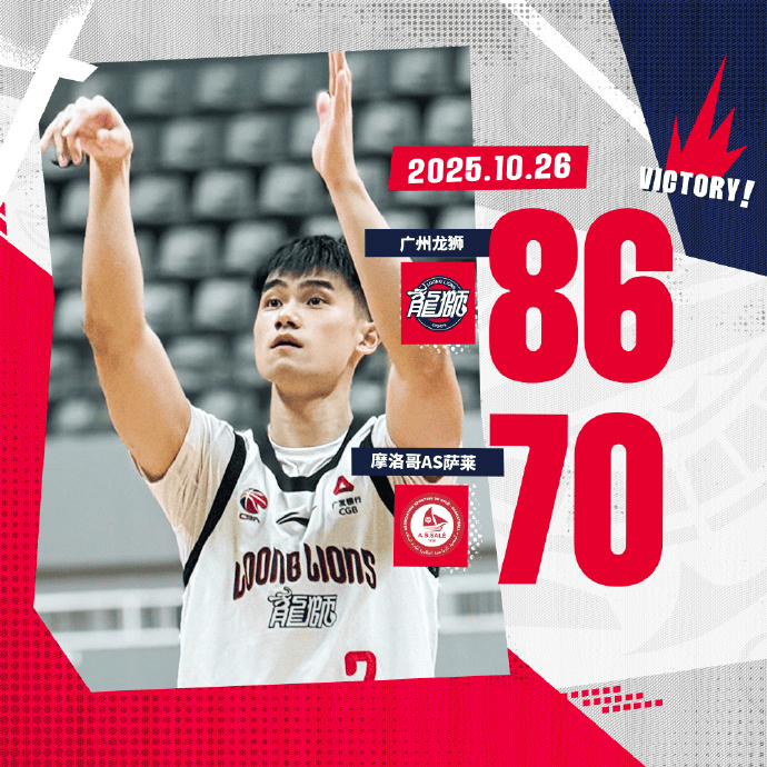 虎扑10月26日讯广州男篮更新洲俱杯战报:邵炜昀25分,球队力克摩洛哥AS萨莱。