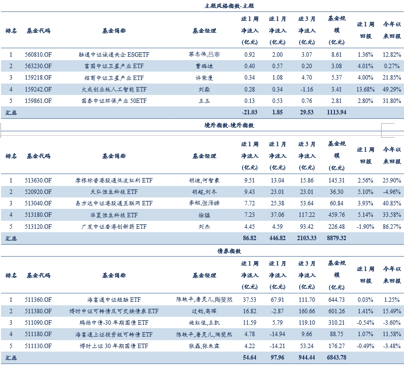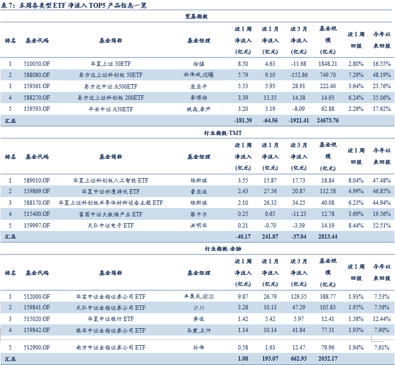 ETF市场跟踪:宽基ETF仍保持流出态势不变,行业方面TMT、周期制造亦有流出
