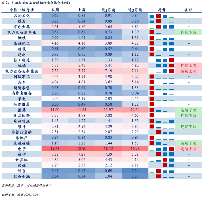 主动权益产品行业动向:电子、农林牧渔仓位提升,医药、计算机仓位下调