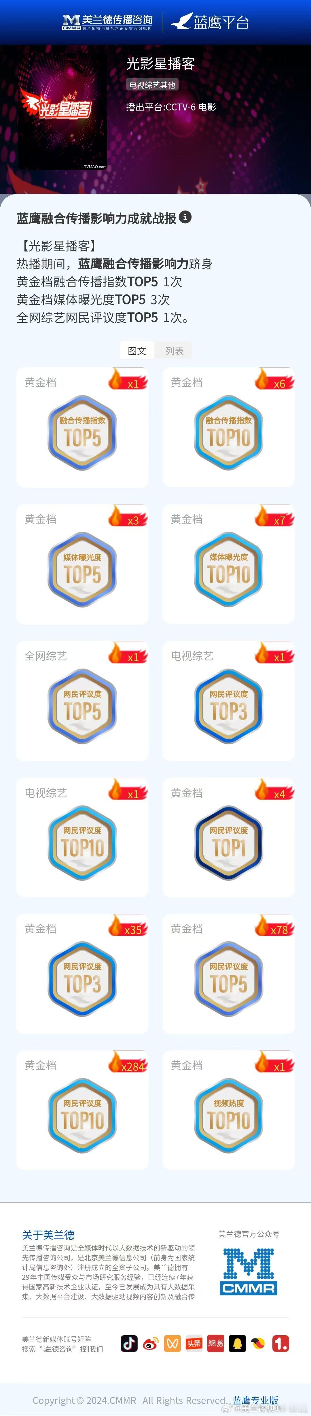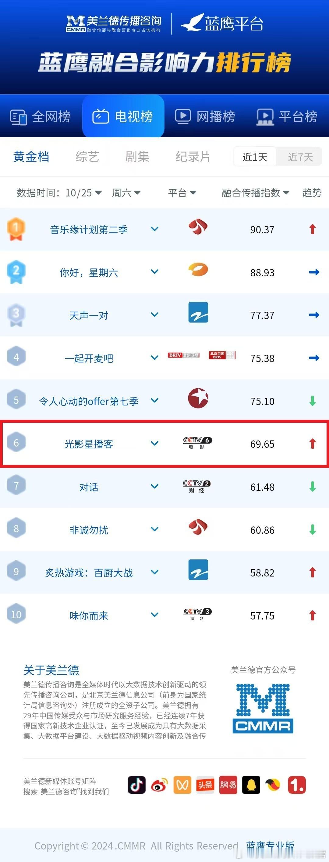 田栩宁那一期cctv6的光影星播客是黄金档电视节目传播指数榜的第六[泪奔]太牛了