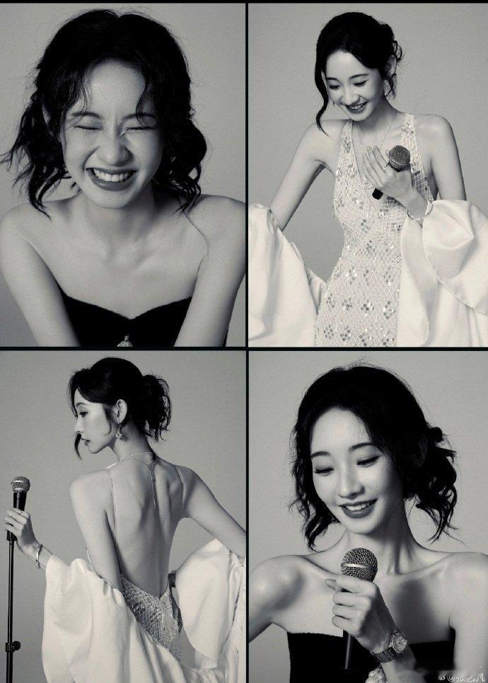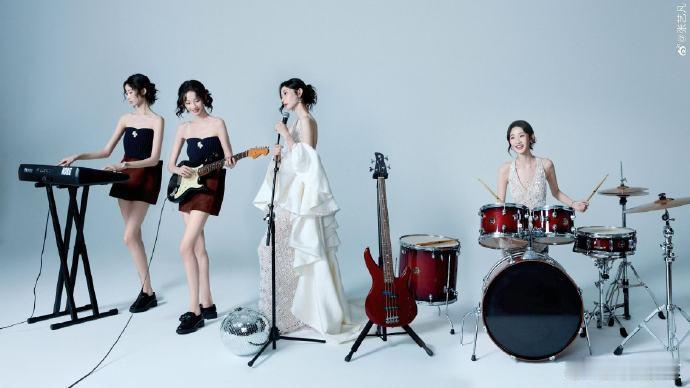 张艺凡白色亮片挂脖长裙,一手轻执鼓槌,一手扶鼓,优雅又漂亮,期待姐姐的红毯