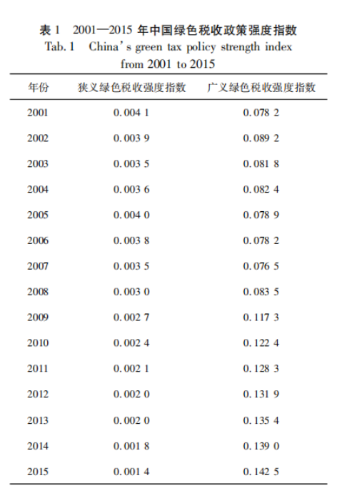 二、中国绿色税收政策强度测算