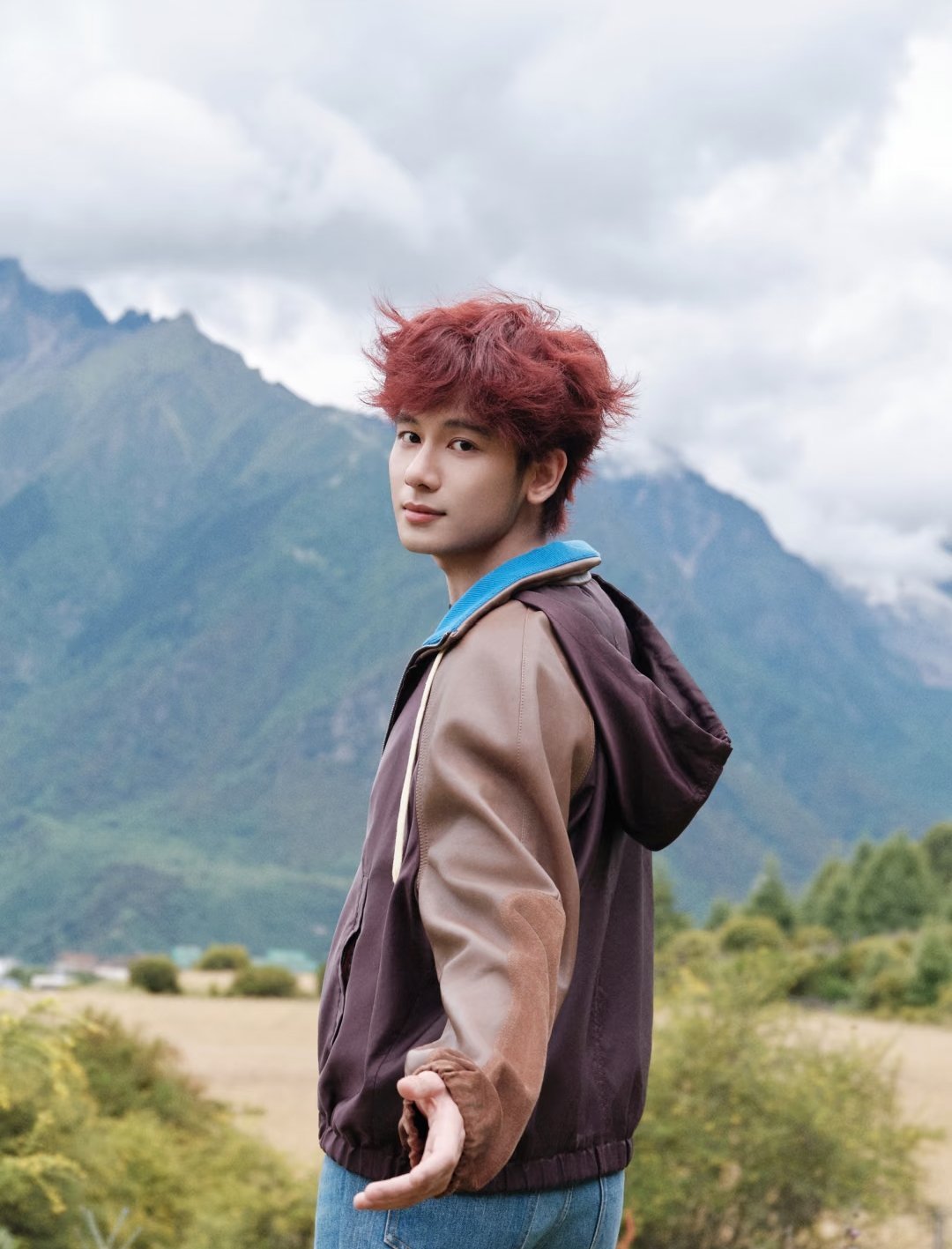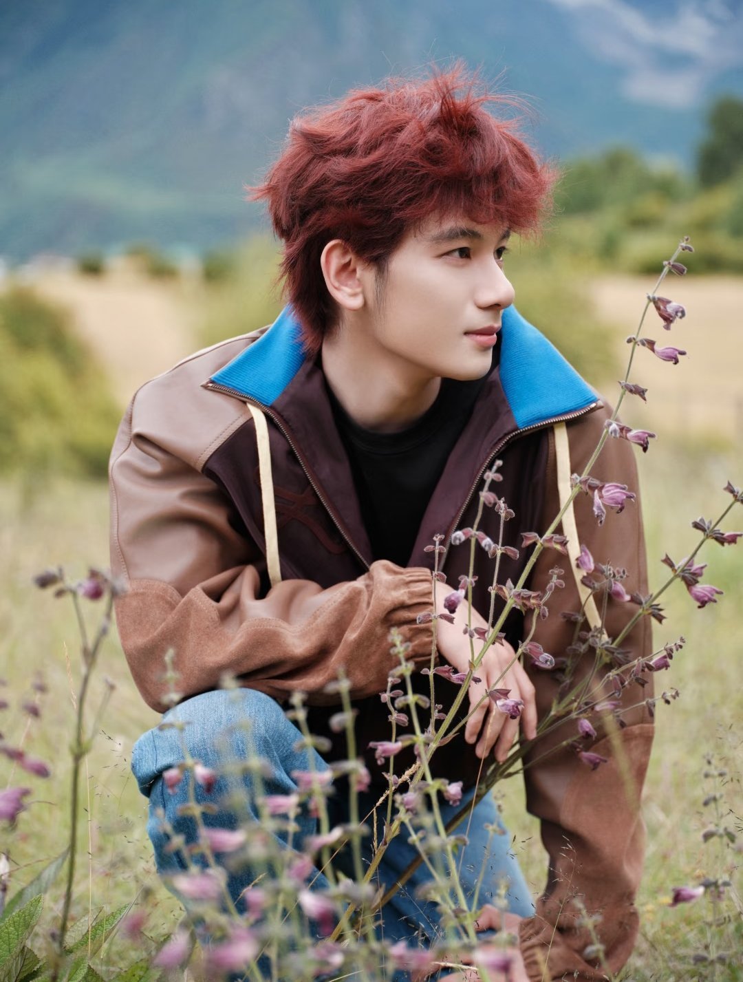 胡先煦分享了一组红发写真,并配文“扎西德勒”。
