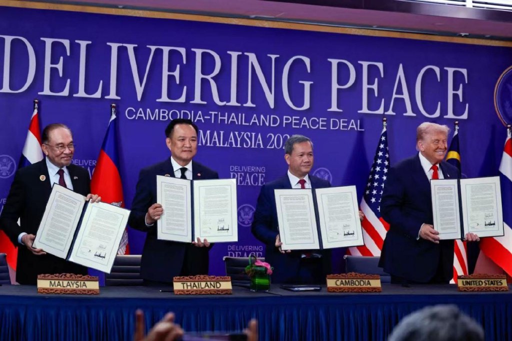 泰国和柬埔寨领导人26日在吉隆坡东盟峰会期间签署了和平协议,美国总统特朗普见证了这一事件。