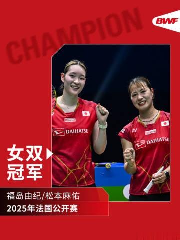 直播吧10月26日讯2025年法国羽毛球公开赛女双决赛,李怡婧/罗徐敏1-2不敌福岛由纪/松本麻佑。