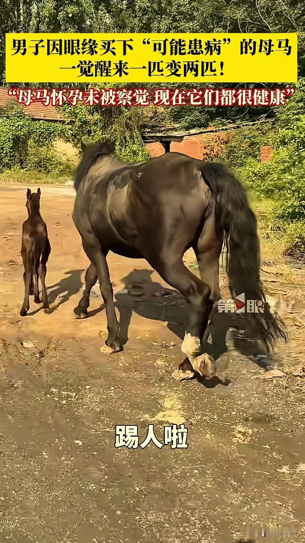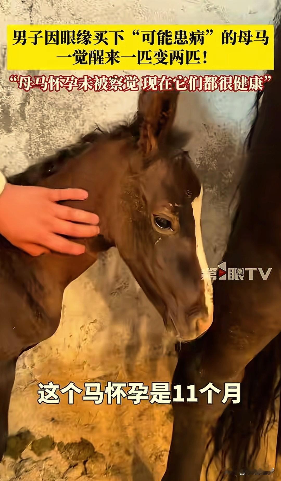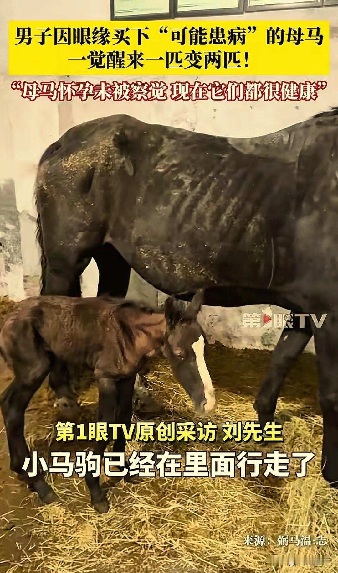 “赚大了!”山东淄博,一男子在马友那里突然看中了一匹“疑似患病”的母马,只因它模样可怜,男子当场决定买回家养!结果第 二天男子大清早起来喂马时,眼前的一幕让他目瞪口呆!网友:这是福报,善良的人总是会有出其不意的惊喜! 男子简直不敢相信自己的眼睛,马圈里,竟然多出来一匹和母马极为相似的小马驹! 根据第 一眼新闻报道,这件“买一 送一”撞大运的事,就发生在10月25日。 男子透露,因担心“生病”的母马刚买回来不适应,他一大早就起来准备喂草,没想到,打开门,除了母马,里面竟然站着一匹格外精神的小马! 它一脸怯生生的看着男子,直往母亲身边靠,男子一下子被那种难以言喻的感觉填满整个内心,他早就顾不得喂草了,也想象不出这匹马昨晚到底经历了多少痛苦才生下孩子,赶紧拉过小马驹来个全身检查。 确认母 子平安后,男子高兴的合不拢嘴,直到这时他才明白,原来母马看起来像是生病懒得动,是因为怀孕了,而马友并未发觉此事,反而觉得它碍眼给卖了。 果然遇到不同的人,连日子过得都不一样了,当初母马被嫌弃得像根草,到了男子家,却被宠的像个宝!男子还说,当初买下它,就是因为眼缘好,没想到会有这么大的惊喜! 男子把视频发到了网上,还高兴的说:“小马现在特别健康,都可以活蹦乱跳的踢人啦!” 有网友总结说:男子真是发大财了。母马没有病而他是按病马价 格买的,并且还“赠送”了一匹小马驹,简直赚翻了! 也有网友说:这就是缘分,也许男子不买,母马和小马不一定能健康的生活,但是买回来母马竟然是健康的,还生下来健康的小马!新主人肯定觉得是好兆头,人和马互相旺!