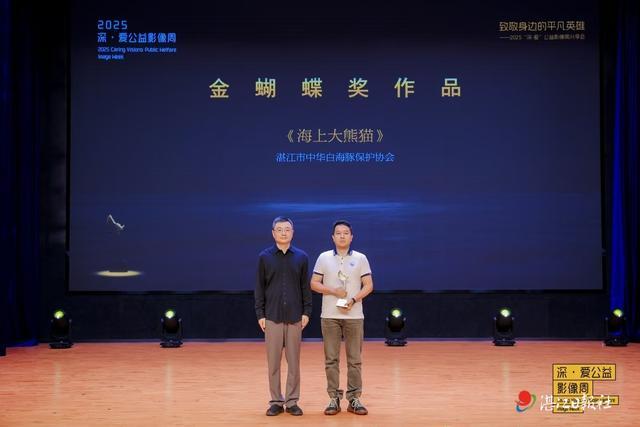 2025“深·爱”公益影像周由深圳市文明办指导、深圳市关爱办主办,是以公益为主题的视觉、影像盛典。活动以“小屏大爱”为主题,共征集到公益作品超700项。经过初评、网络点赞、终评等环节,最终产生了“金蝴蝶作品”“年度最佳纪录片”等,其中由中共湛江市委宣传部、湛江市外事局指导,湛江市中华白海豚保护协会联合法国导演共同创作的纪录片《海上大熊猫》凭借深刻的生态内涵与精湛的叙事手法脱颖而出,评审团评价其“用真实影像搭建起公众与海洋生态的沟通桥梁,让保护意识直抵人心”。
