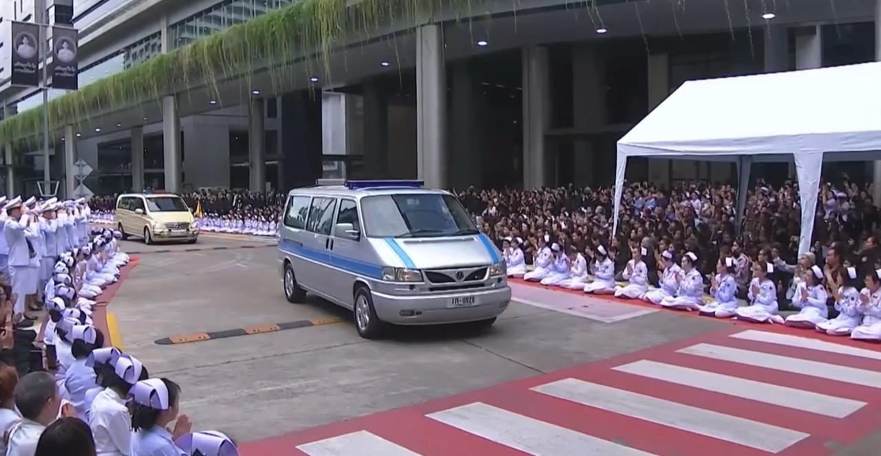 诗琳通公主接母亲灵柩,泰王与王后苏提达并没有现身。10月26日,诗丽吉王太后的灵