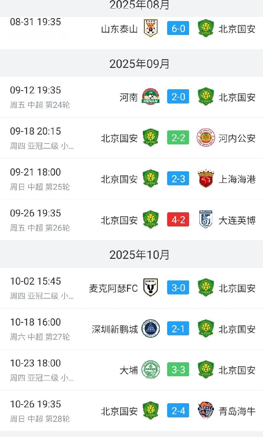 国安自从9月份开始,就赢了一场比赛!从被山东打了6-0以后,完全没有争冠的心气了! 传言就是传言!那些国安球员被欠薪的都是谣言!真踢不过才是现实,好多位置上都没有可用的球员!尤其后防位置上的重要人员,没错,就是恩加德乌! 这场丢4个,尤其这个解围,完全就是失误!这从半程争冠,到后期摆烂!没办法,一旦球队没了主心骨,没了领袖球员,谁也救不了!张稀哲也顶不住! 国安这赛季算是玩了个过山车!别人都是低开高走,他是骤降! 这还有最后一个足协杯冠军,要是再拿不到,那才叫“脸都不要了”!
