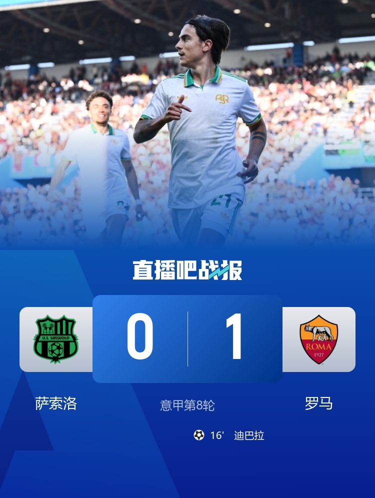 全场比赛结束,罗马1-0萨索洛。