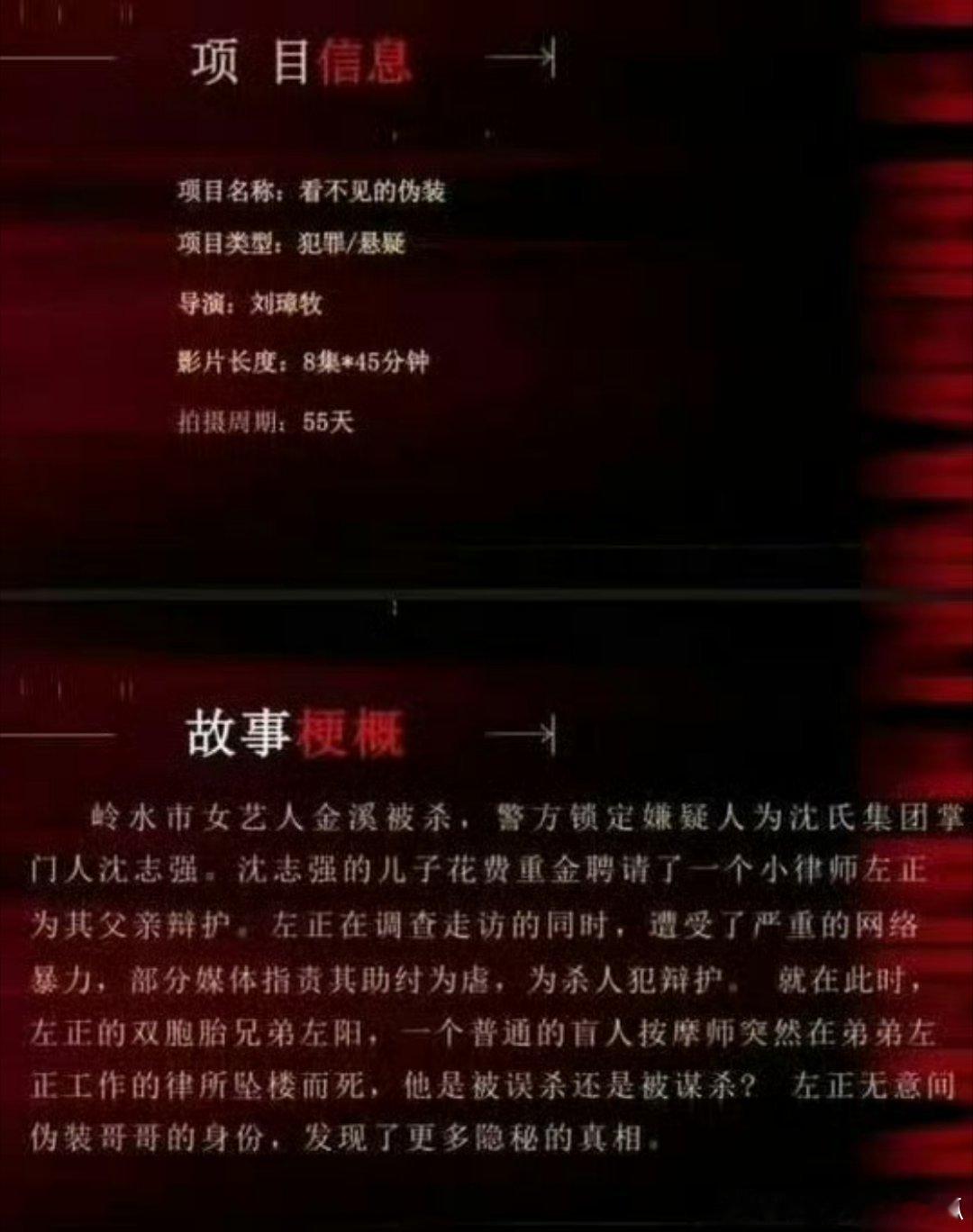 🍉🍉👖8集悬疑剧《看不见的伪装》11月开机
