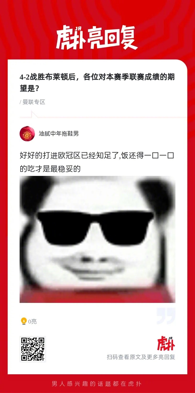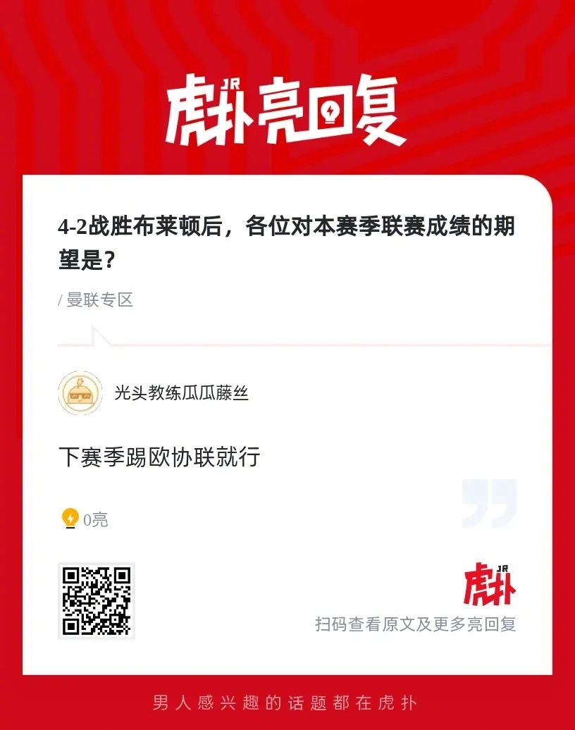 曼联球迷来说说:4-2战胜布莱顿后,各位对本赛季联赛成绩的期望是?