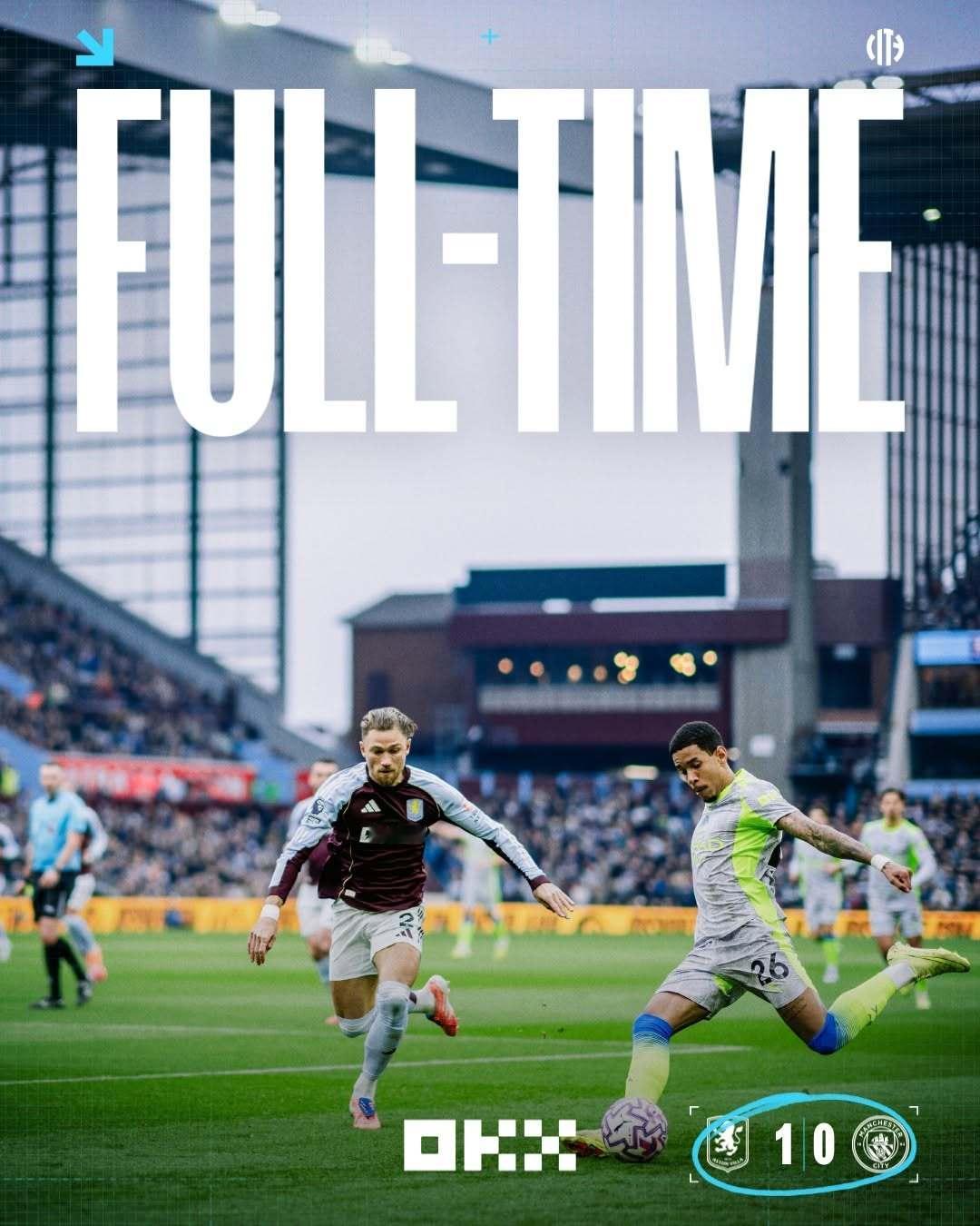 英超 曼城客场0:1负于阿斯顿维拉队,赖因德斯🇳🇱首发出场76分钟。[拳头]