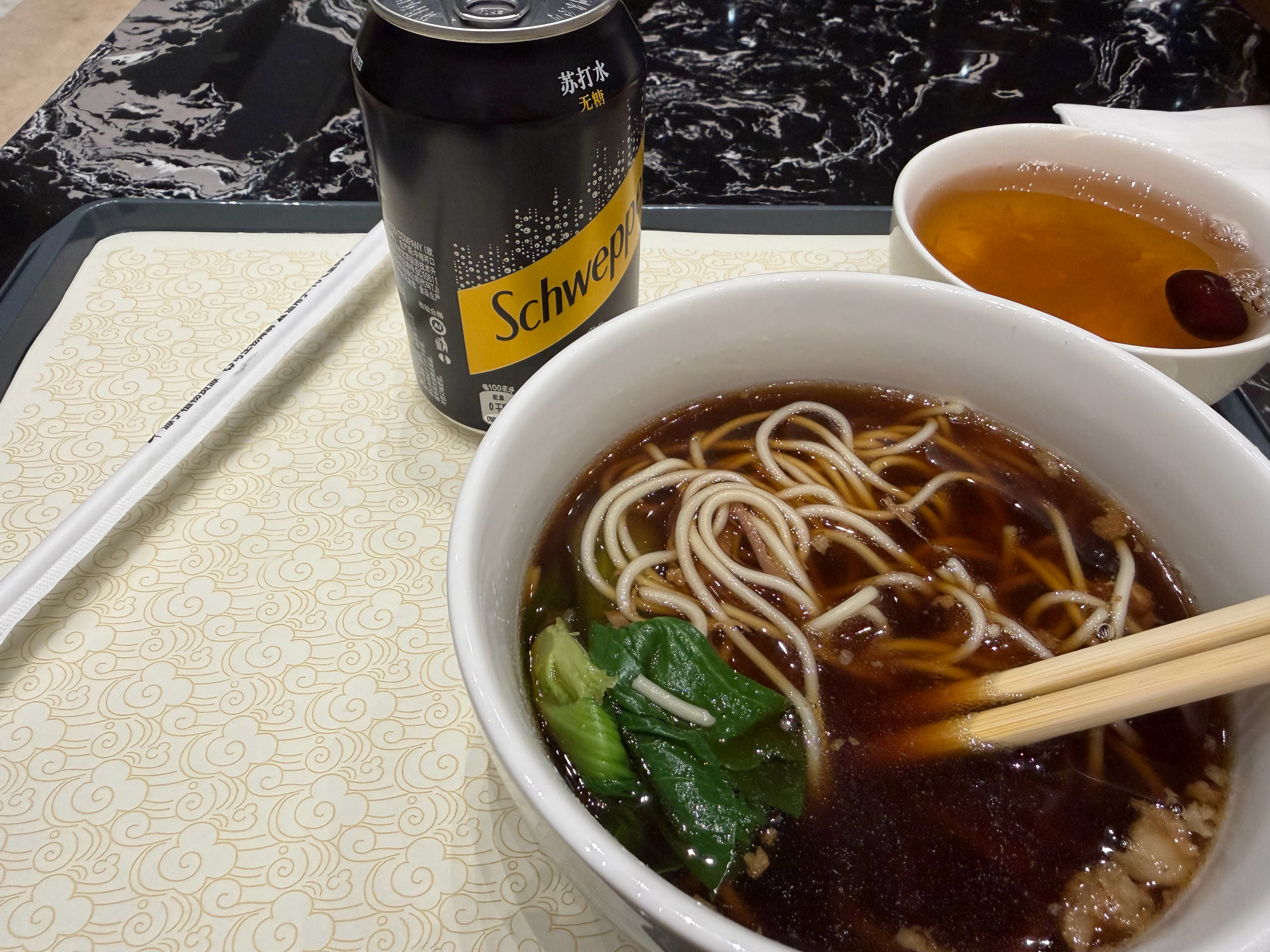 真的是又困又饿,今天机场人还真不少,一群穿短裤的欧洲人[偷笑]话说国航休息室牛肉面的份量真的很适合宵夜,胃一下舒服了,上飞机就睡觉😪