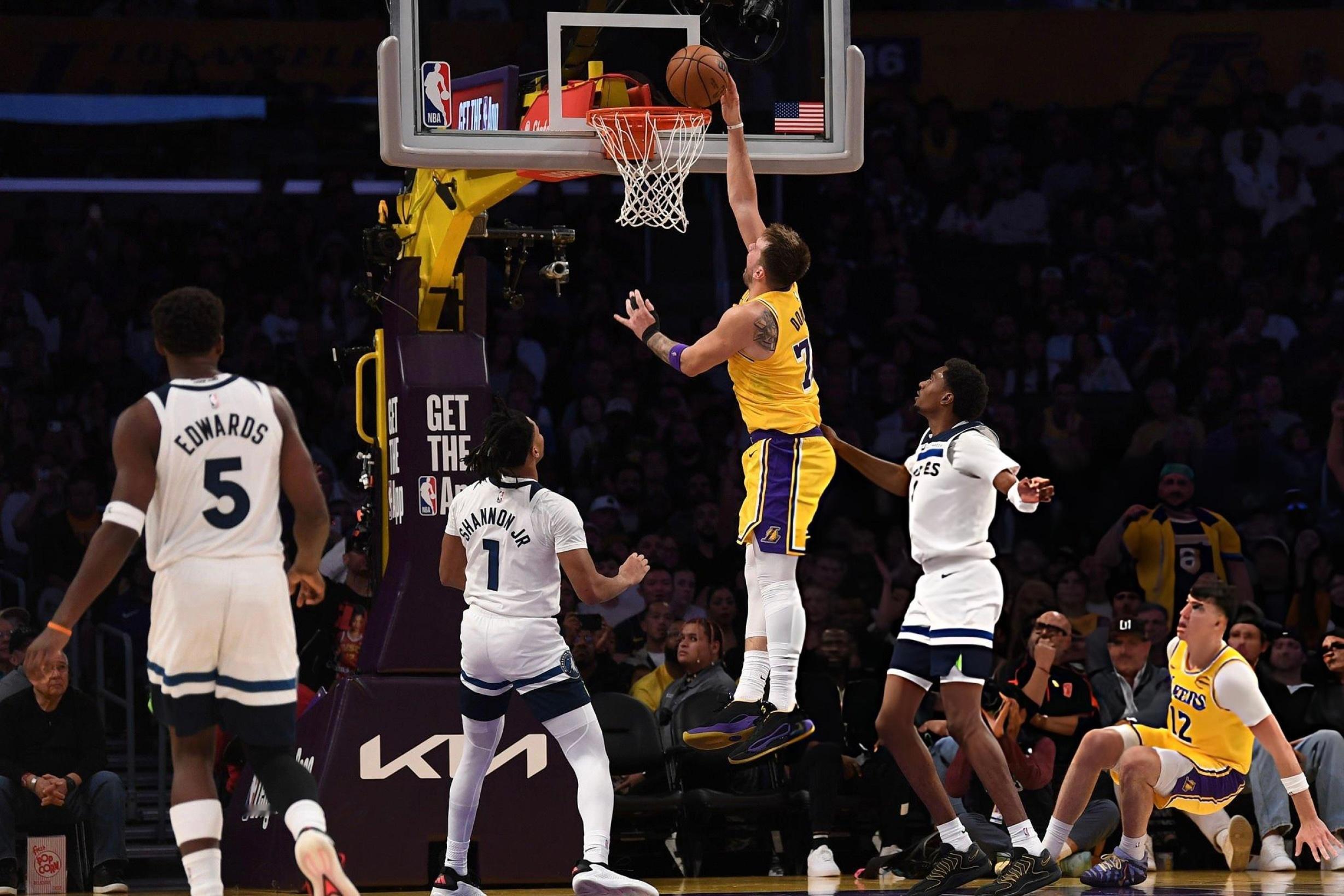 常规赛G2: 湖人128-110战胜森林狼东契奇49分11篮板8助攻[哆啦A梦害