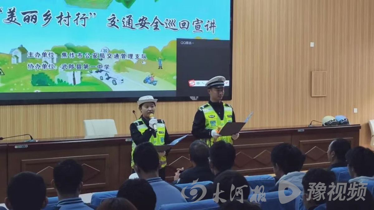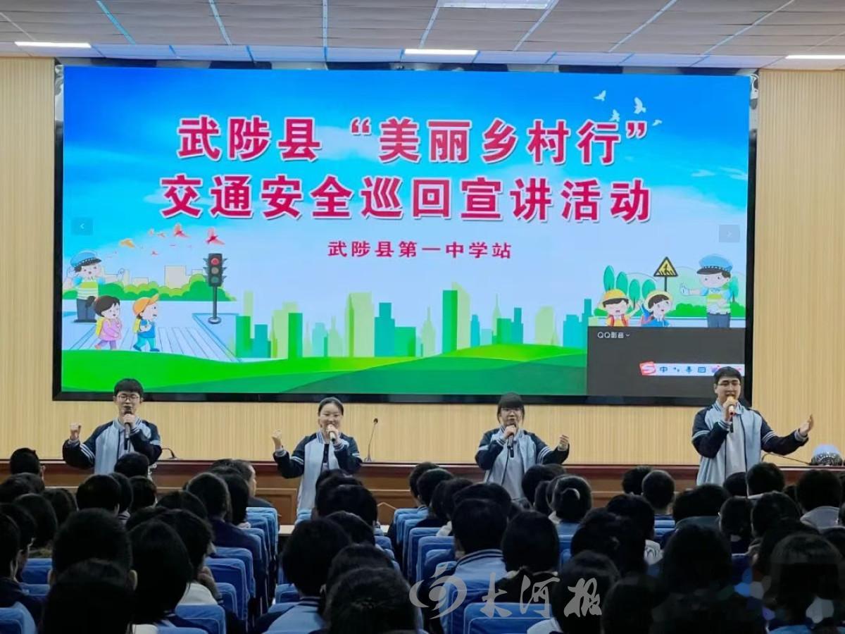 为提升广大学生交通安全意识和自我防护能力,有效预防和减少学生交通事故的发生,近日,焦作交警“文艺轻骑兵”宣讲小分队在武陟县公安局交通管理大队的配合下走进武陟一中,为300余名师生送上形式新颖、内容丰富的交通安全大餐。