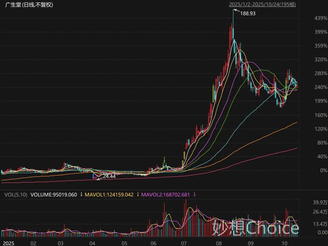 10月24日,广生堂报收114.96元/股,年内已涨超251%,成为中药企业向创新药战略延伸的典型案例。