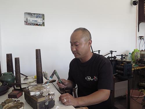 岳金波的银饰技艺,并非无源之水。他的本领得益于他的老师——李明安老师傅的悉心传授,其根基深植于通海银饰传统工艺。