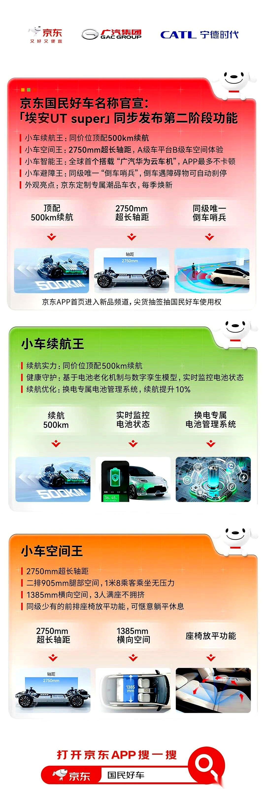 广汽、京东、宁德时代。 这仨巨头凑一桌,你猜他们聊啥? 聊怎么让你开电车,跟换手机电池一样方便。 昨天那个刷屏的“国民神车”,就是他们攒的局,埃安UT。 核心就一个词儿:“巧克力换电”。 名字听着挺好吃,意思就是,电车没电了,甭管你是在商场地下,还是在自家小区,咔嚓一下,像掰块巧克力一样,把旧电池抽出来,新电池塞进去。 满血复活。 整个过程,据说比你点杯咖啡等出品的时间还快。 续航500公里,这数据现在不稀奇。 稀奇的是这个玩法。 很多人肯定会说,换电站呢?又画饼。蔚来搞了这么多年,不也还没全面铺开吗? 但这次不一样,带头大哥是京东。 你琢磨琢磨。 京东最牛的是什么?不是卖东西,是它那张铺满全国的物流网啊!是那些能把生鲜冷链送到你家冰箱里的无数个前置仓和京东小哥啊! 他们能把鸡蛋和牛奶精准地送到你手里,就不能把一块块标准化的“电池巧克力”铺到你身边? 这想象空间一下就打开了。 以前我们总觉得,电车的终局是充电桩越来越多、充电速度越来越快。 现在人家告诉你,或许根本就不用“充”,直接“换”。 这思路,真野。 感觉一个新时代的大门,正在被这几位猛男,用力地往开踹。